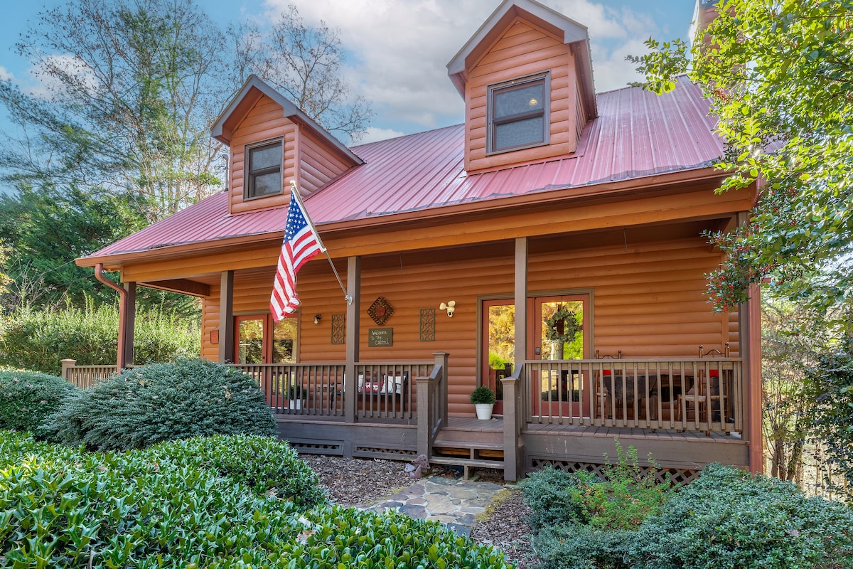 Riverfront cabin near Blue Ridge with hot tub, porch swing bed, fire pit, fireplace and 2 king beds on the Cartecay River across from 2000+ acre forest with hiking trails. Just over an hour from the Atlanta, GA or Chattanooga, TN airport and 5 min to downtown Ellijay or 30 min from downtown Blue Ridge. Wineries 10-15 min away! Fishing, kayaking, tubing, hiking, zip lining, biking, wineries/ vineyards, orchards, shopping and dining await you or just relax on the porch and listen to the river!