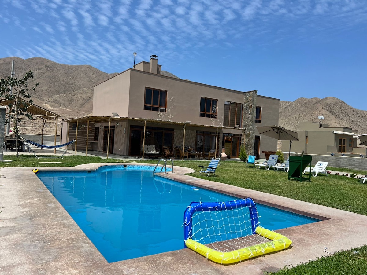 Escápate de la ciudad y disfruta de una experiencia única en nuestra acogedora casa de campo. Disfruta el mejor clima cerca de Lima, con sol todo el año. Piscina , jardín amplio , zona de parrilla y horno de barro. Ubicada en un condominio de solo 5 casas independientes. Espacios cómodos y ventilados. Cocina totalmente equipada. TV y WIFI de alta velocidad. Estacionamiento privado . Pet friendly. Perfecta para familias, parejas o grupos pequeños que buscan tranquilidad. Relájate en el campo!