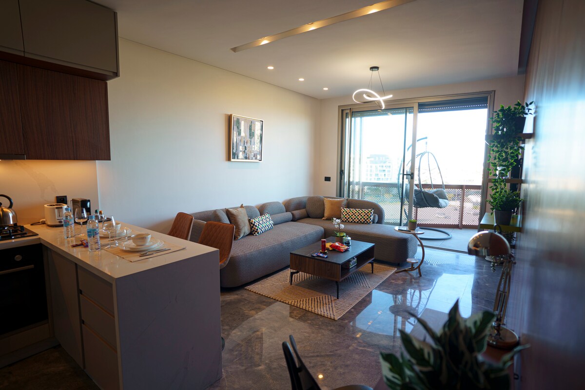 Bienvenue dans ce petit bijou au cœur de Casa Finance City ! Un appartement chic et lumineux, une terrasse avec hamac pour se détendre, un salon cosy et spacieux, une chambre élégante avec vue dégagée, et une cuisine ultra-équipée pour une expérience parfaite. Wi-Fi fibre rapide, climatisation centrale, espace télétravail et accès autonome. Le tout, à deux pas d’Aeria Mall et du tramway. Un séjour tout confort vous attend… prêt à en profiter ?