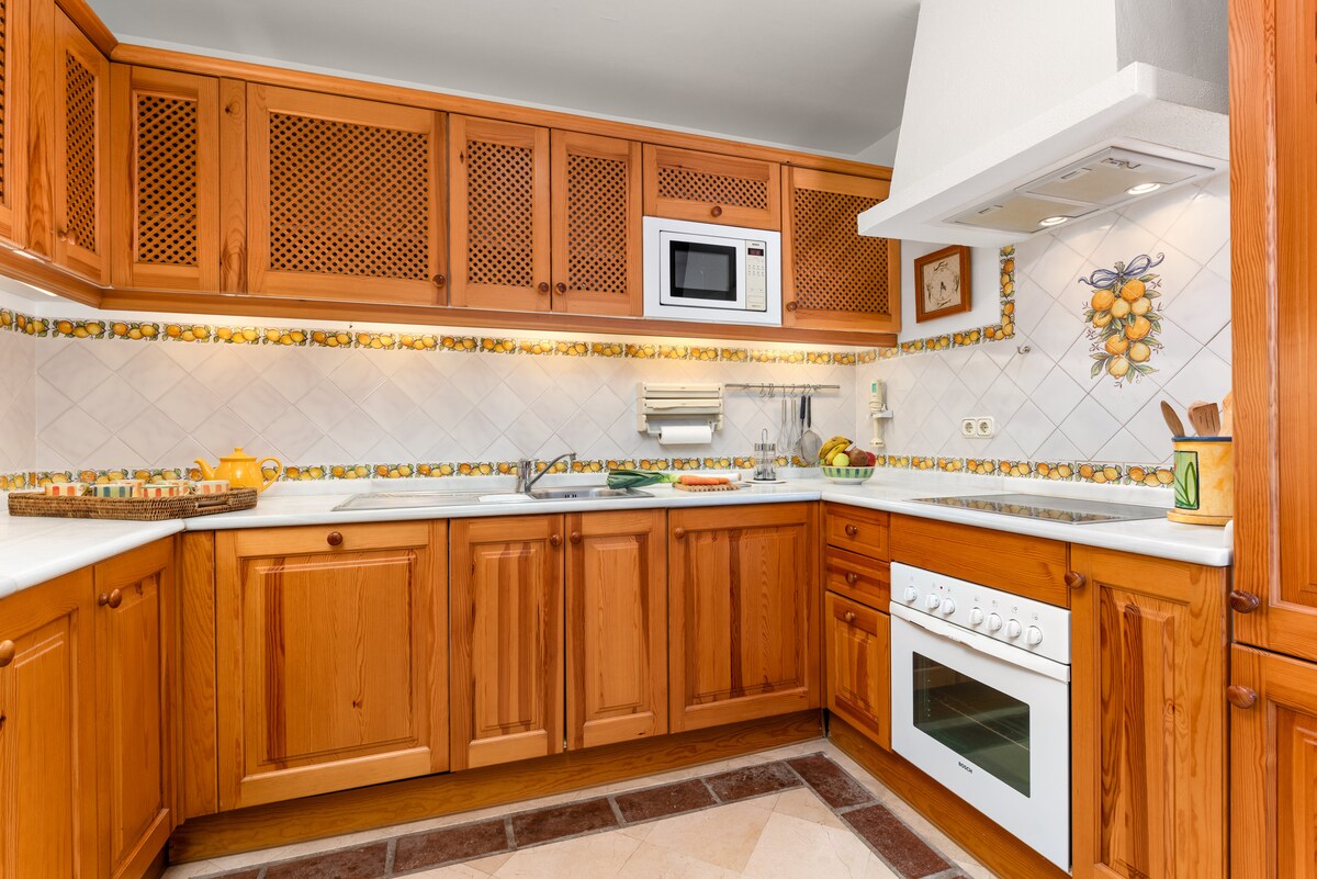Apartamento soleado para relajarse, disfrutar y divertirse. El apartamento está en un complejo cerrado con vistas al mar. En el gran jardín hay dos piscinas y una piscina para niños, así como un parque infantil. El apartamento es ideal para una familia. Tiene un salón/comedor combinado, cocina, 2 dormitorios y 2 baños. Una de ellas es En Suit. Está totalmente equipado con Wi-Fi, lavadora, lavavajillas, etc. Te sentirás en casa.