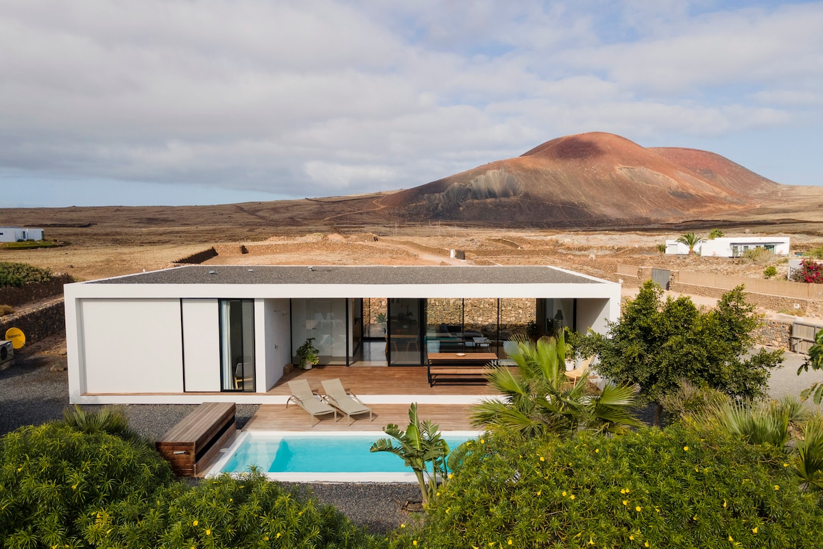 Casa minimalista con vistas al volcán y piscina climatizada
