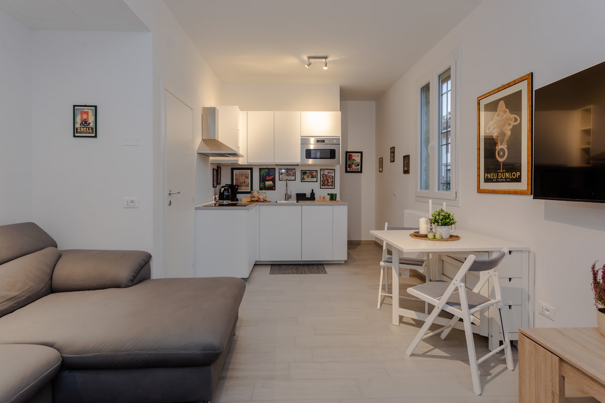 Estamos en el tercer y último piso (con ascensor) de un encantador edificio histórico, en una calle tan céntrica como tranquila, en la zona histórica más fascinante, elegante y segura. De hecho, estamos entre la Piazza delle Sette Chiese y las famosas Due Torri, a 5 minutos a pie de la Piazza Maggiore. El espacio consta de sala de estar con cocina equipada, dormitorio y baño adyacente. Hay todos los servicios importantes como wifi, aire acondicionado, cafetera Nespresso y lavadora.