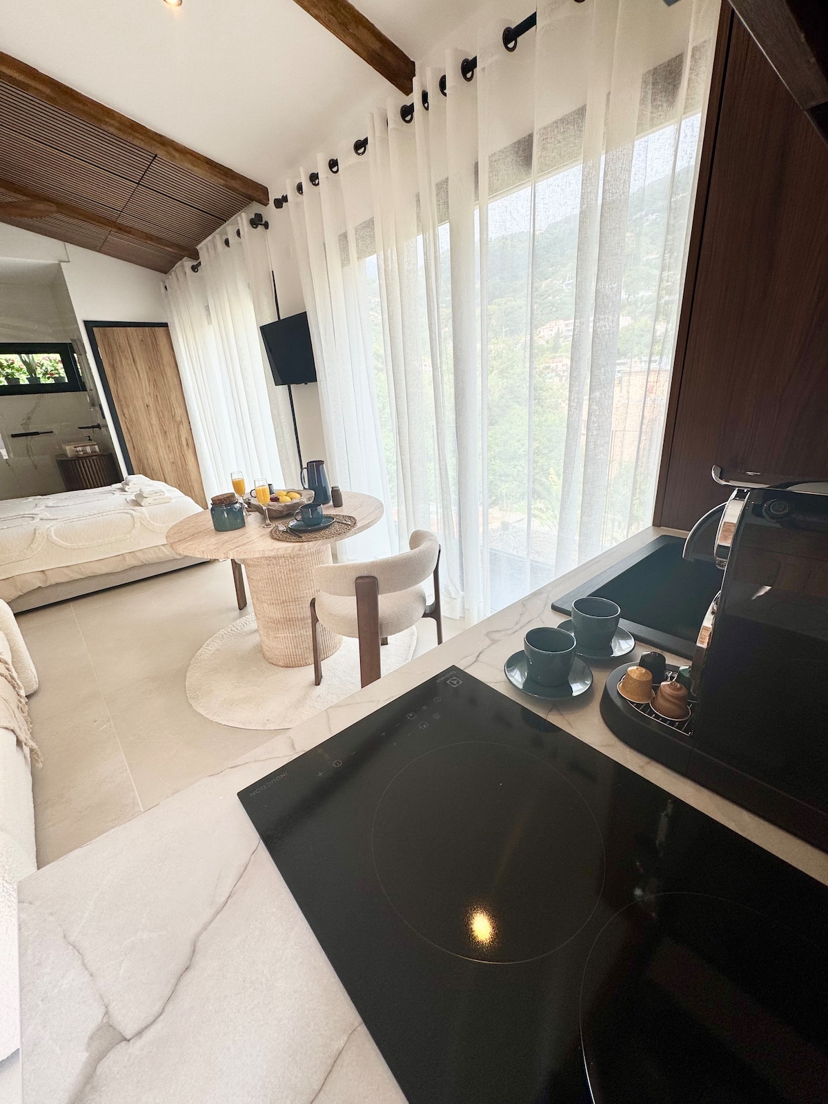 Brand new elegant appartement with spectacular sea views, sleeping up to 4 people. Perched on the mountainside overlooking the Mediterranean perfectly situated between Nice and Monaco and only minutes from the medieval Village of Eze. A perfect place to relax and enjoy the scenery and the beautiful Riviera. Plus a new addition to the garden is our "Terrain de pétanque" Private Parking available for our guests!