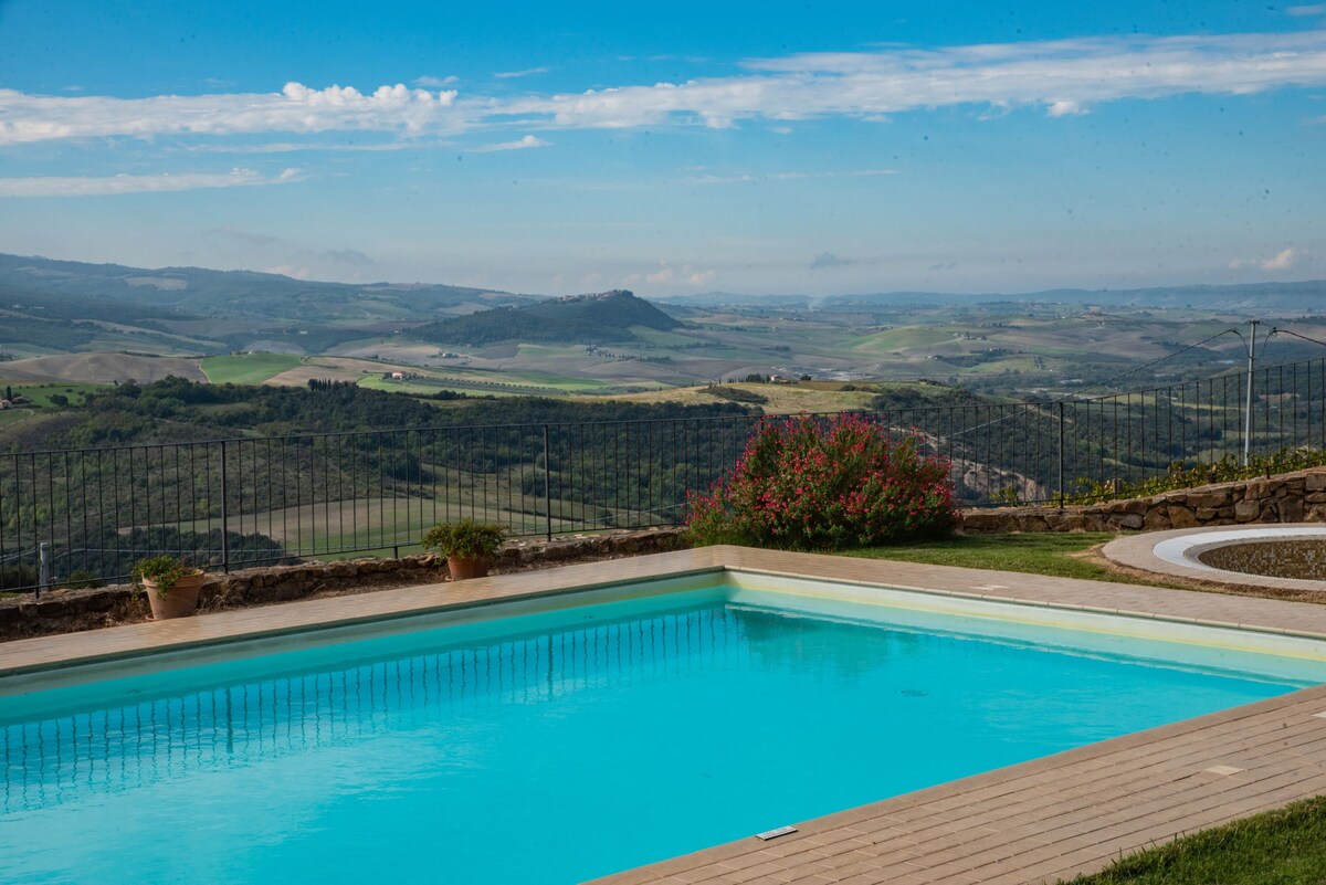 ¡Bienvenidos a Palazzo Monaci! Un oasis de naturaleza y belleza única, en el corazón de las Crete Senesi, en la Toscana. Una residencia con piscina y unas vistas impresionantes de las Crete Senesi. Perfecta para parejas o familias que buscan unas vacaciones relajantes. La ubicación es perfecta para explorar los alrededores. Podrás hacer excursiones por la campiña toscana, visitar los característicos pueblos medievales, degustar los deliciosos vinos locales y sumergirte en la cultura y la historia de esta fascinante región.