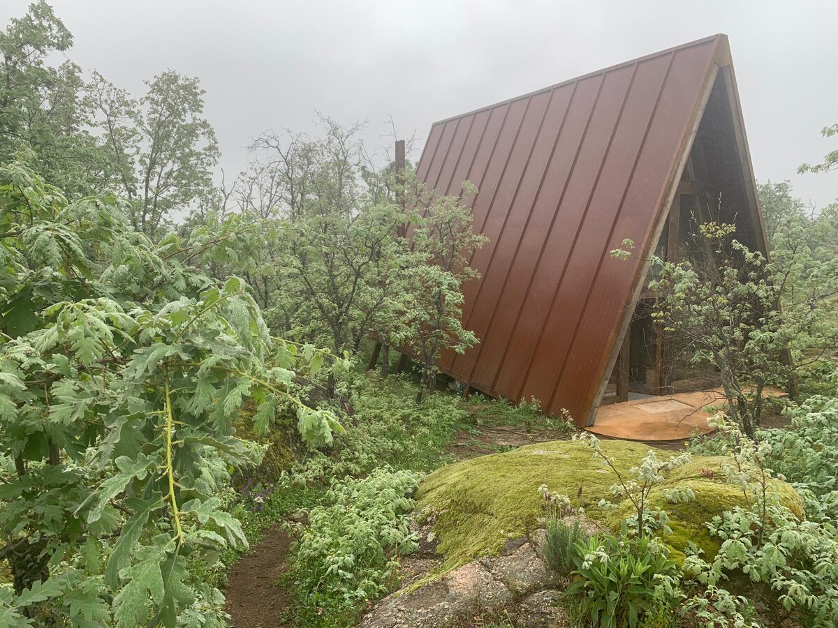 Vivienda unifamiliar en plena naturaleza a 3 km del pueblo de Candeleda. Consta de una amplia estancia de Salon/comedor/cocina, dos habitaciones dobles y dos baños, organizados en una única planta sin desnivel (el espacio de la planta inferior no se alquila). Situada en el paraje de La Tijera, en una parcela de 7000m2 de bosque en la ladera de la montaña con espectaculares vistas al Valle del Tietar. Antigua zona de bancales de cultivo de olivos hoy poblada de robles, castaños y madroños.