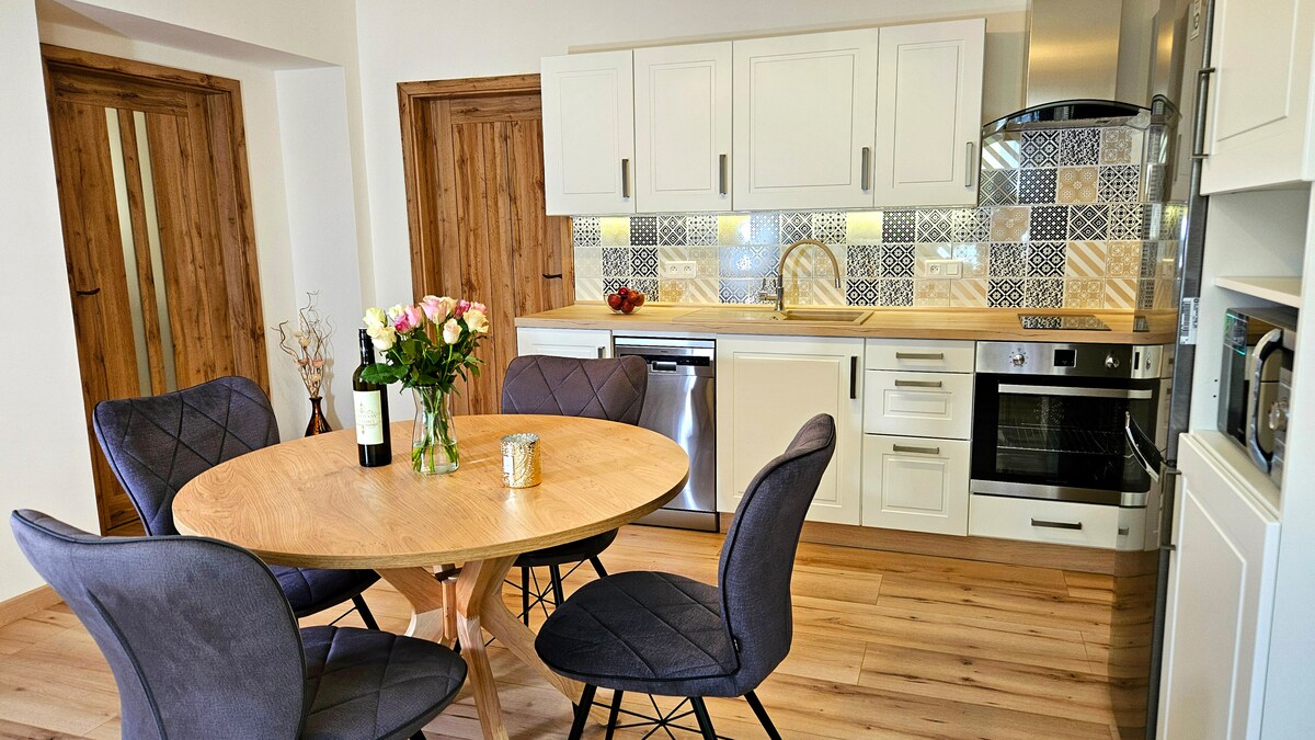 Disfrute de un hermoso verano en el sur de Moravia. En el parque del castillo todo florece y se vuelve verde. El color verde fresco de todo lo que le rodea le dará energía y buen humor. Nuestros lujosos Apartamentos Podzámčí se encuentran a pocos pasos del centro, justo detrás del parque del castillo. Lo que le espera: • Alojamiento elegante y confortable con todas las comodidades • ¡Una botella de prosecco de bienvenida gratis! • Paseos románticos por el parque en flor • Relajación en un ambiente tranquilo ¡Esperamos su visita!