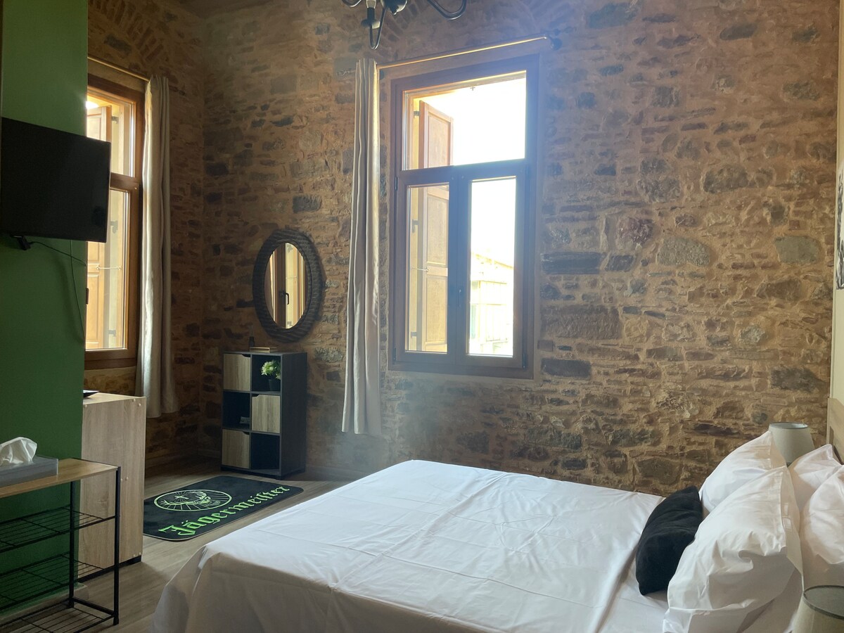 Te damos la bienvenida a nuestro cautivador departamento de molinos de viento en Chios, diseñado para un máximo de cuatro huéspedes. Este encantador refugio combina la arquitectura tradicional con las comodidades modernas, que incluyen un dormitorio, una acogedora sala de estar con detalles de madera y un baño acogedor. Disfruta de unas vistas inigualables de los emblemáticos molinos de viento de Quíos y el mar desde tus ventanas. Ubicado a solo 10 minutos a pie del centro de la ciudad de Chios, tendrás fácil acceso a restaurantes, cafeterías, supermercados y estacionamiento , lo que garantiza una estancia conveniente.