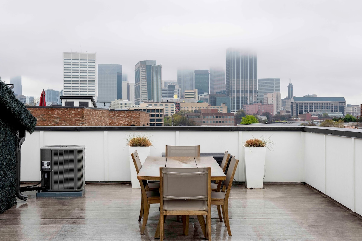 Bienvenido a The Mercedes, tu propio refugio de lujo en Atlanta. Esta propiedad cuenta con más de 2000 pies cuadrados de espacio habitable que incluye un patio y una terraza en la azotea, y se encuentra a poca distancia a pie del estadio Mercedes Benz. La casa adosada también ofrece vistas panorámicas al horizonte de Atlanta, muebles de alta gama y suelos con temperatura controlada individualmente.