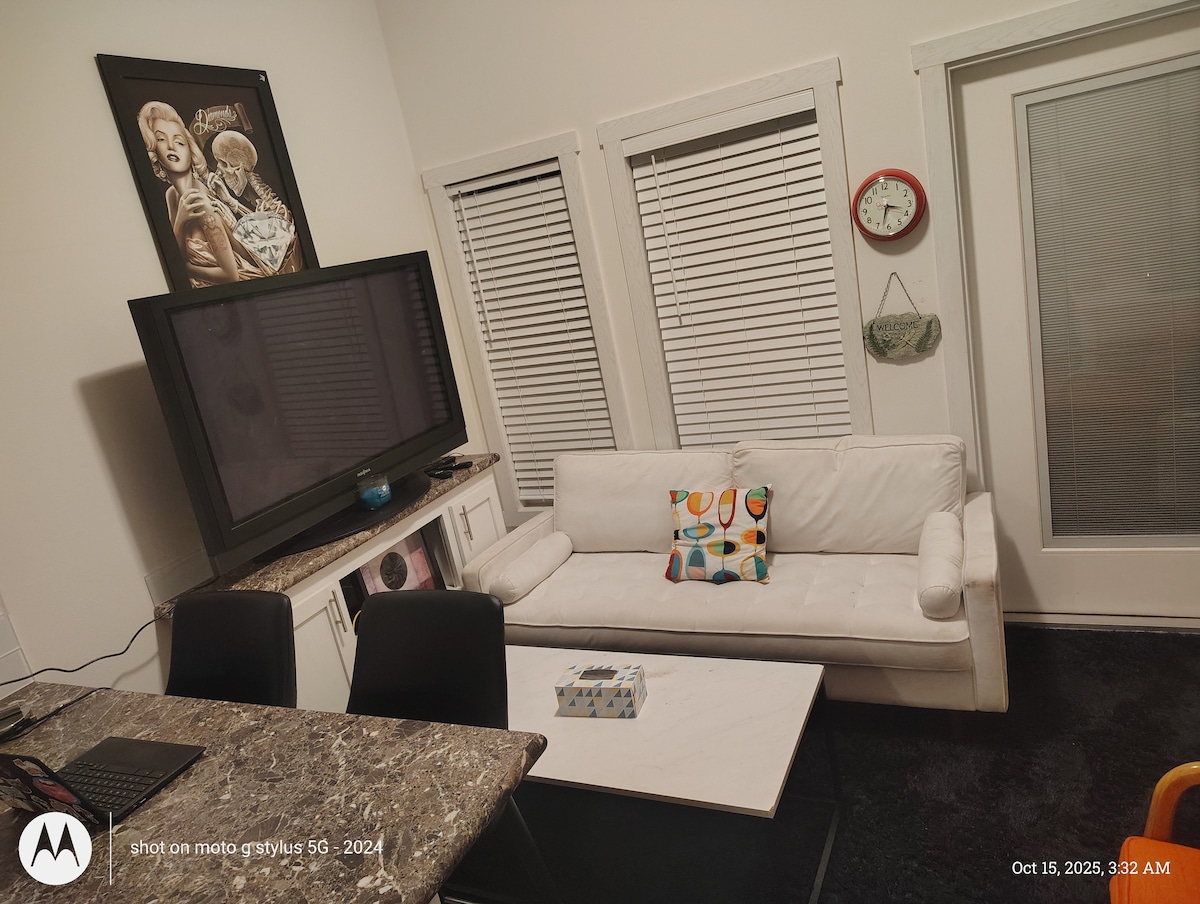 Relájate en esta encantadora casa de un dormitorio a pocos minutos del centro de Hickory. Disfruta de un porche envolvente con un columpio, un patio completo para tus mascotas o niños y un ambiente acogedor y vintage en todas partes. Este espacio es apto para perros y gatos, tiene capacidad para 4 personas, cama tamaño king y sofá cama para una cama doble, vecindario tranquilo, noche tranquila en el porche delantero. Perfecto para parejas, familias pequeñas o trabajadores remotos que buscan un refugio tranquilo cerca de todo. ** LEE LA DESCRIPCIÓN COMPLETA **
