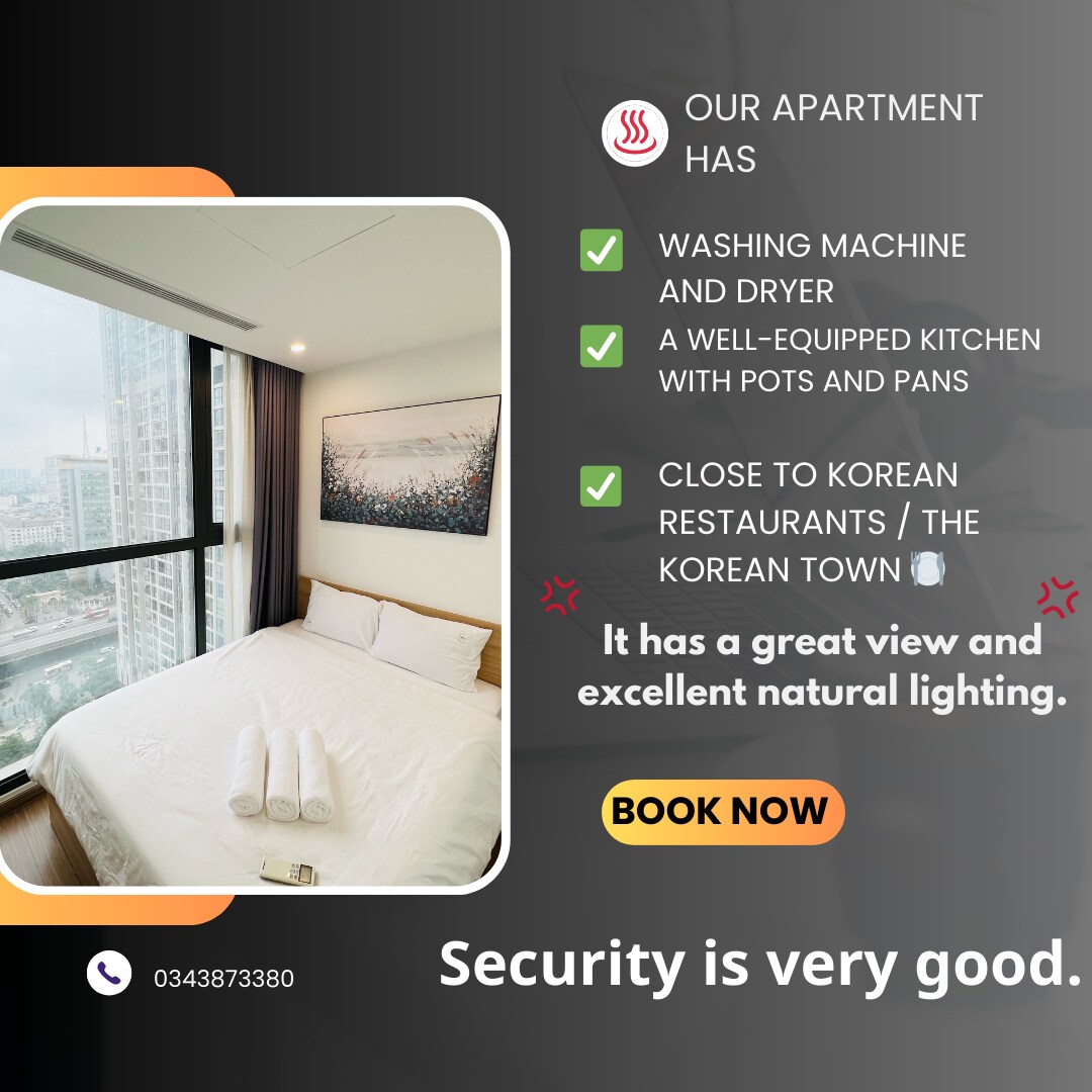Esta es una moderna cadena de apartamentos ubicada en los lujosos complejos de apartamentos de Hanói. Vinhomes D'Capitale es uno de los mejores lugares para vivir, cada apartamento está decorado con buen gusto, limpio y reluciente y tiene una gran vista a la ciudad, vista al lago desde los mejores pisos. Ofrecemos alojamiento perfecto para parejas, familias o viajeros solteros.