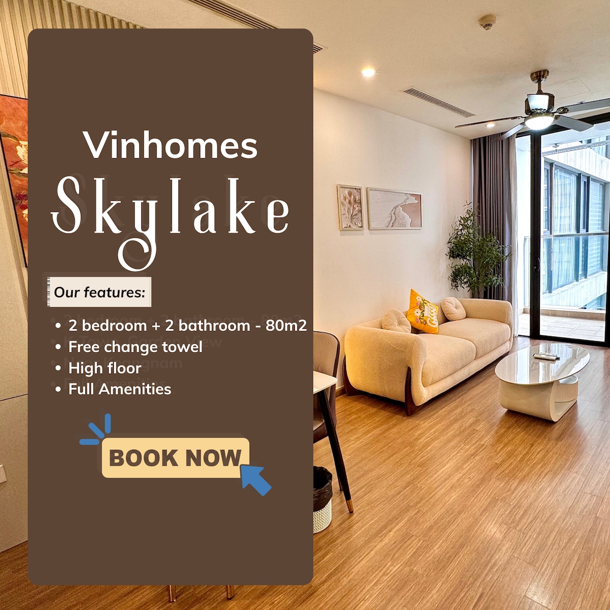 2BR+2WC/Vinhomes Skylake/Piso alto/Toalla de uso diario