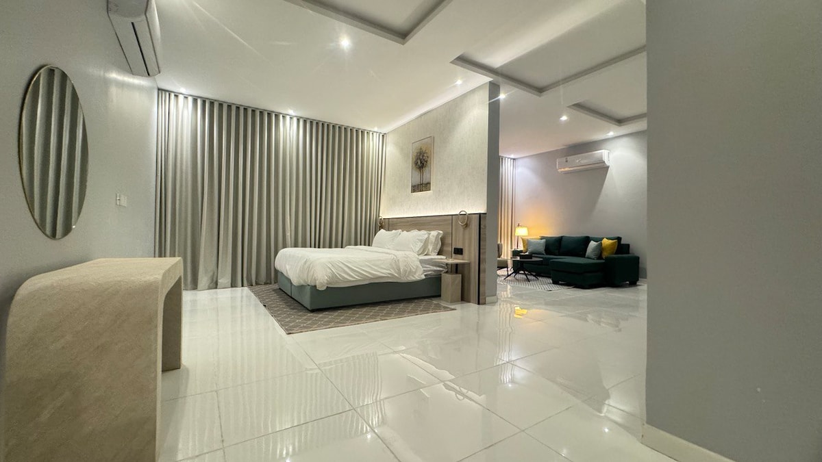 Habitación y sala de estar en Bani Malik con acceso inteligente