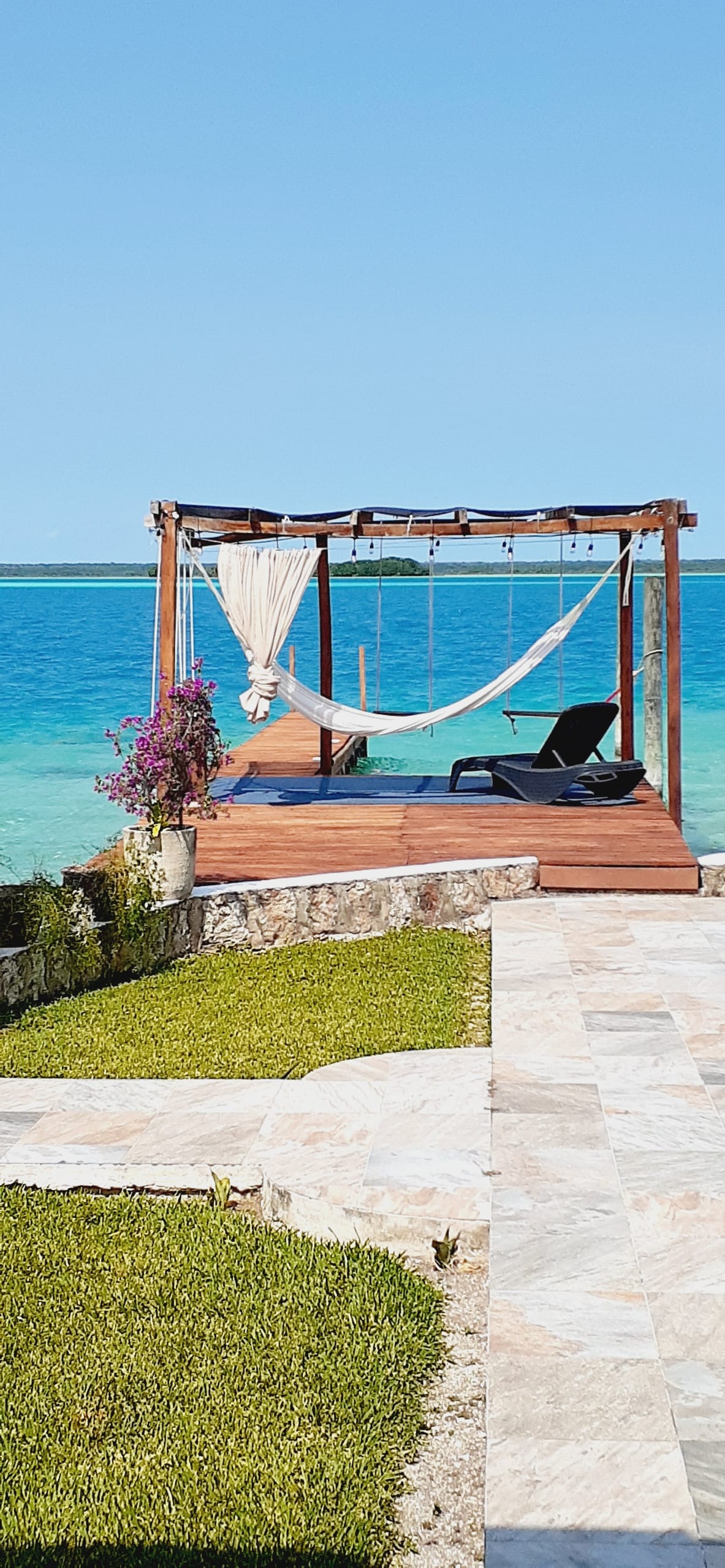 “Casa la Vista” es nuestra casa de descanso, la construimos y equipamos con todo lo necesario para relajarnos, convivir y disfrutar de la suerte de tener, en el patio de la casa, la laguna de Bacalar. Utilizamos la casa en días especiales para nosotros, el resto del tiempo la compartimos, a través de Airbnb, con el resto del mundo.