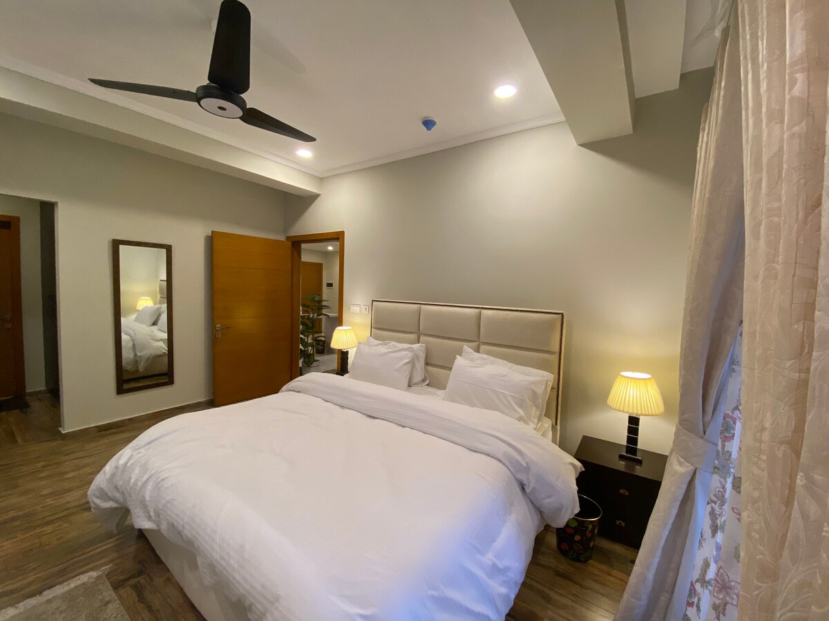 ¡Te damos la bienvenida a SkyLuxe: tu escapada chic en Islamabad! Este apartamento de 1 dormitorio recién amueblado ofrece un diseño y comodidad modernos. Situado en la autopista principal, es perfecto para relajarse. Diseño moderno: muebles personalizados e iluminación ambiental. Balcón privado: vistas panorámicas para tu té por la mañana. Piscina de acceso al club en la azotea, gimnasio, Suana y restaurante (cargo adicional). Ubicación privilegiada: a solo unos pasos de DHA y la ciudad de Bahira. ¡Reserva ahora y disfruta de una estancia inolvidable en Skyluxe!