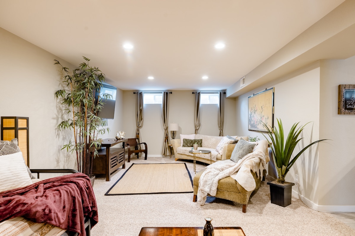 Bienvenido a The Centennial Chalet, ¡tu acogedor refugio a pocas manzanas de tiendas de lujo, restaurantes, entretenimiento y senderos pintorescos! Comienza el día con un café caliente en tu propia terraza privada o un paseo tranquilo por el encantador sendero High Line Canal Trail. Después de un largo día de aventuras, disfruta de un baño rejuvenecedor o de un jacuzzi, acércate al fuego o prepárate para una maratón de Netflix en el impresionante televisor de 75 pulgadas. Te espera la mezcla perfecta de emoción urbana y serenidad natural.