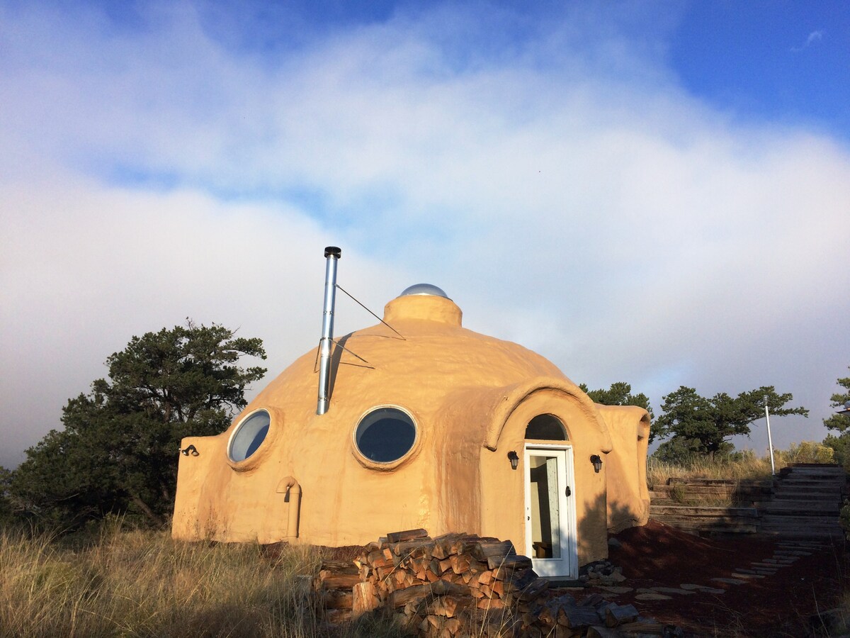 The Dome is soothing & nurturing, with spectacular mountain views and backing to greenbelt. Open living/dining area w/ loft for meditation, yoga & play. Fully equipped open-shelf kitchen with gas range & all appliances; washer/dryer; WiFi. Cozy in winter with radiant floor heat and wood stove (addon cost for use). Perfect get-away; visit sand dunes & hot springs, hike, explore, relax, and enjoy Crestone too. SEE OUR GUIDEBOOK AND REVIEWS!