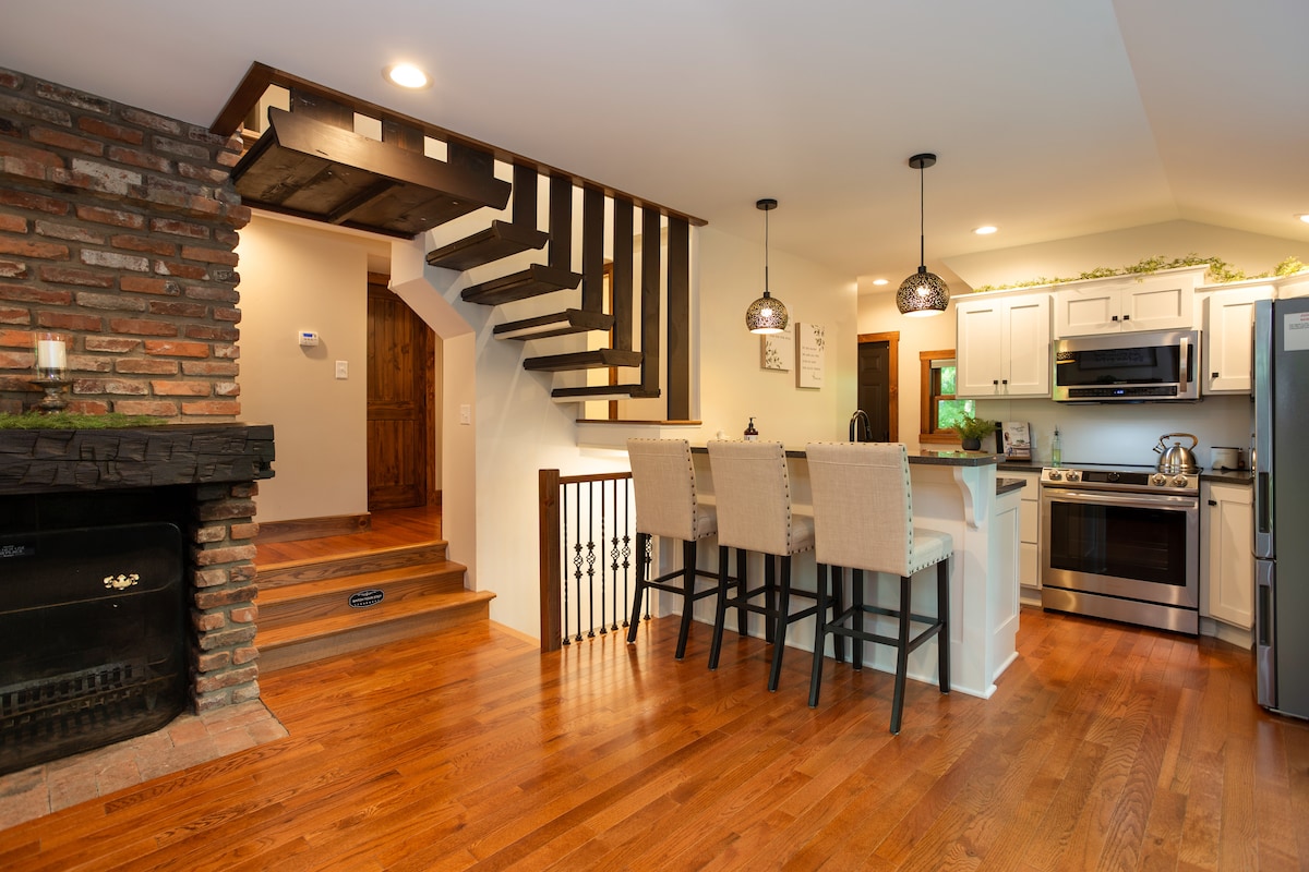 Esta casa alpina tiene un carácter único y ha sido completamente renovada y actualizada. Un entorno perfecto para descansar en el patio junto a la fogata o levantar los talones en la terraza suspendida y ver salir el sol mientras disfrutas de tu taza de café favorita. Un gran lugar para toda tu familia, tu grupo de amigos o simplemente una escapada romántica para dos. Situado en la tranquilidad de la naturaleza y completamente rodeado de bosques y, sin embargo, a solo unos minutos de la ciudad (Mt. Vernon OH).