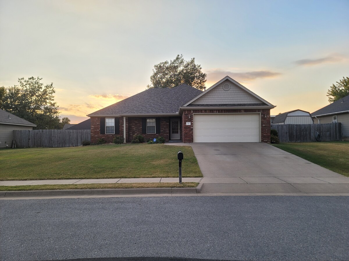 Te damos la bienvenida a nuestra casa de 3 dormitorios y 2 baños de nueva construcción en Bentonville, Arkansas. Disfruta de un ambiente cálido y acogedor en esta casa moderna ubicada en una comunidad encantadora. Perfecto para viajes de negocios, está cerca de las oficinas centrales de Walmart. A los amantes de la naturaleza les encantará la proximidad a senderos para bicicletas de fama mundial. Explora Bentonville Square y el Museo Crystal Bridges, a solo 10 minutos en auto. Además, todas las habitaciones se encuentran en el piso de arriba y se proporcionará un suministro inicial de artículos de papel. Esperamos que disfrutes de tu estadía.