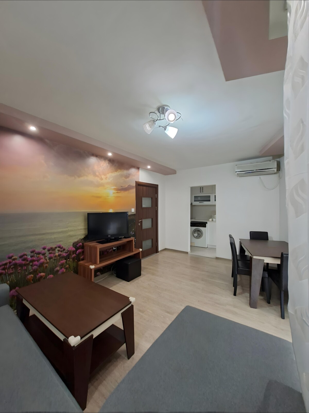 Departamento espacioso y acogedor cerca de Pulmed, Caspela y el centro comercial Plovdiv Mall. Así como a la Universidad Dental y Youth Hill. El departamento está totalmente equipado con todo lo necesario: Wi-Fi de alta velocidad, TV de pantalla plana, aire acondicionado, cocina totalmente equipada, lavadora, colchones cómodos, terraza con mesa y sillas, plancha, secador de pelo, cuna, silla alta, toallas y otros artículos de aseo. Consta de una sala de estar con cocina, dos dormitorios, una terraza y un baño con inodoro. Estacionamiento gratuito en la zona.