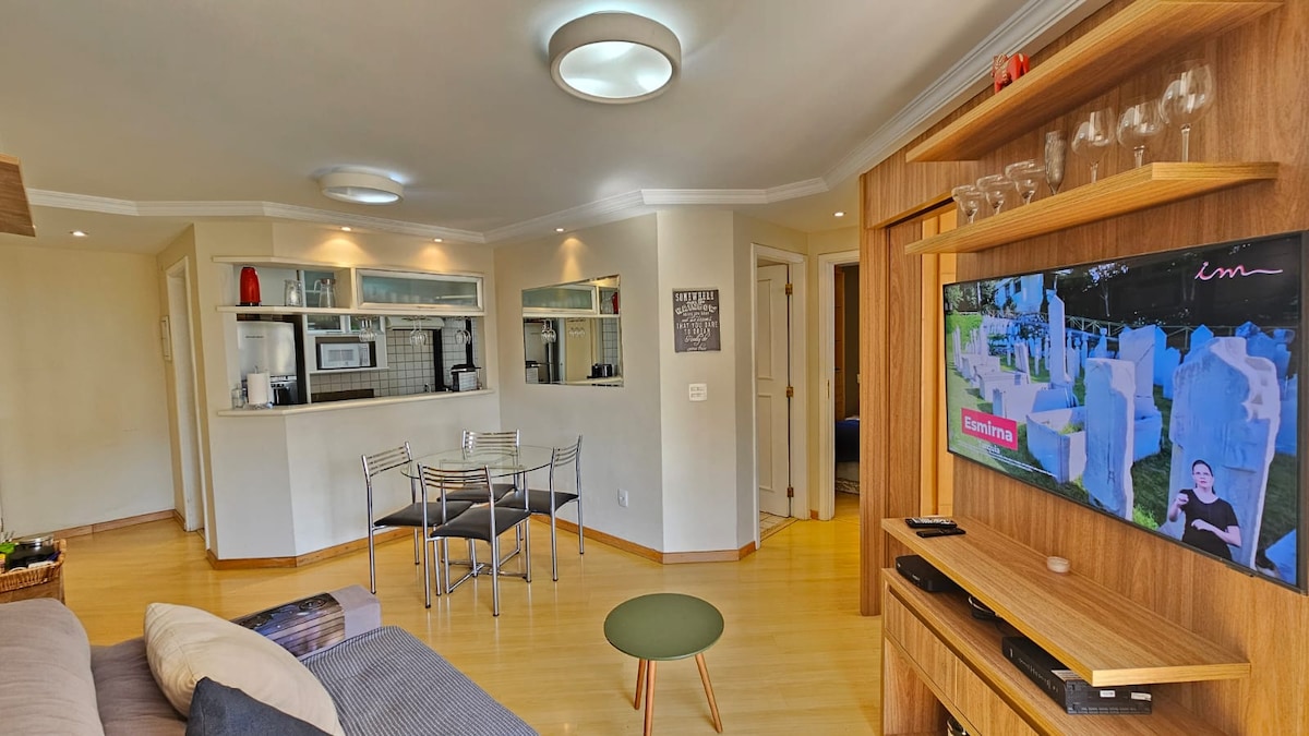 Bem-vindo ao Bali Sanctuary Stay. Um studio boutique inspirado na serenidade de Bali. O ambiente combina móveis assinados, peças autênticas da ilha e elementos naturais, criando um refúgio elegante e acolhedor. Cama queen, Smart TV, internet de alta velocidade e cozinha altamente equipada completam a experiência. Em localização central, é um pequeno santuário urbano para quem busca conforto, design e uma estadia especial, mantendo ao mesmo tempo uma atmosfera tranquila e exclusiva.