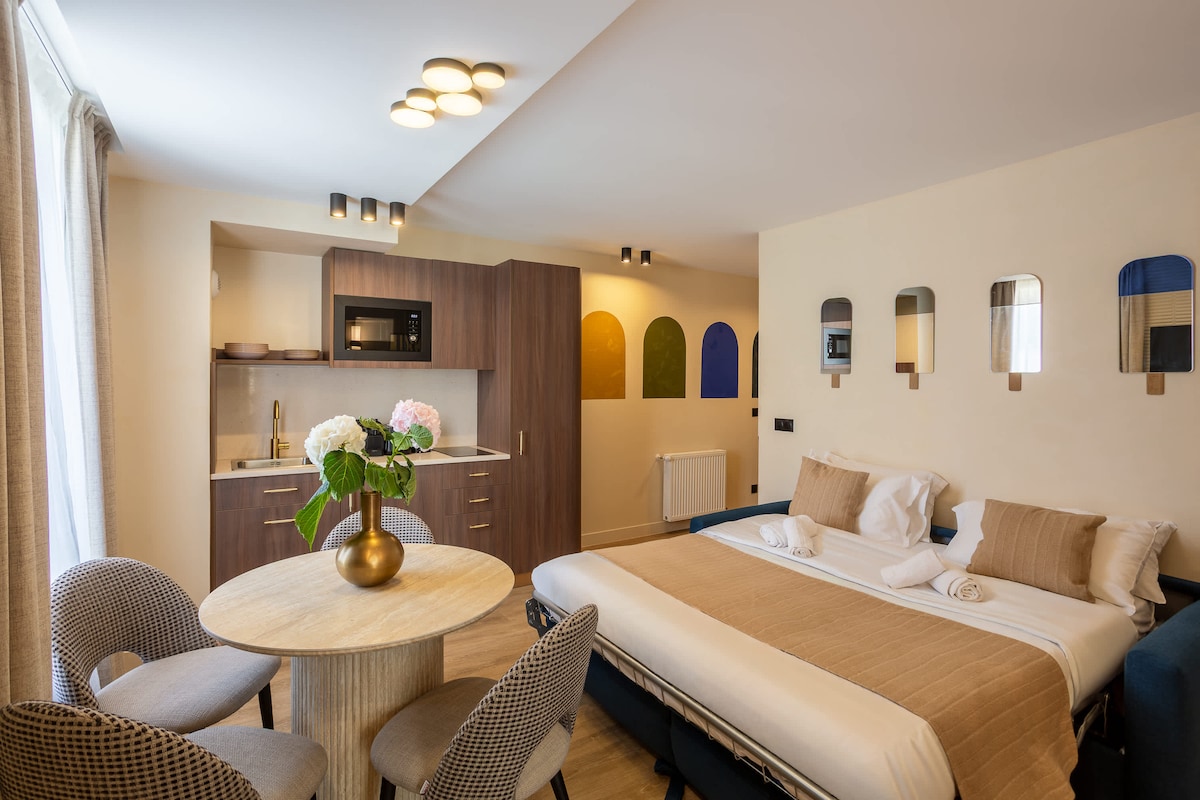 Este magnífico apartamento de cuatro estrellas está idealmente situado en el centro de París, en el corazón del 3er distrito, en el Boulevard de Sébastopol. Ya sea que esté en un viaje de negocios o visitando nuestra hermosa capital, le ofrecemos la oportunidad de vivir como un parisino durante su estancia, disfrutando de los servicios de una residencia de lujo.