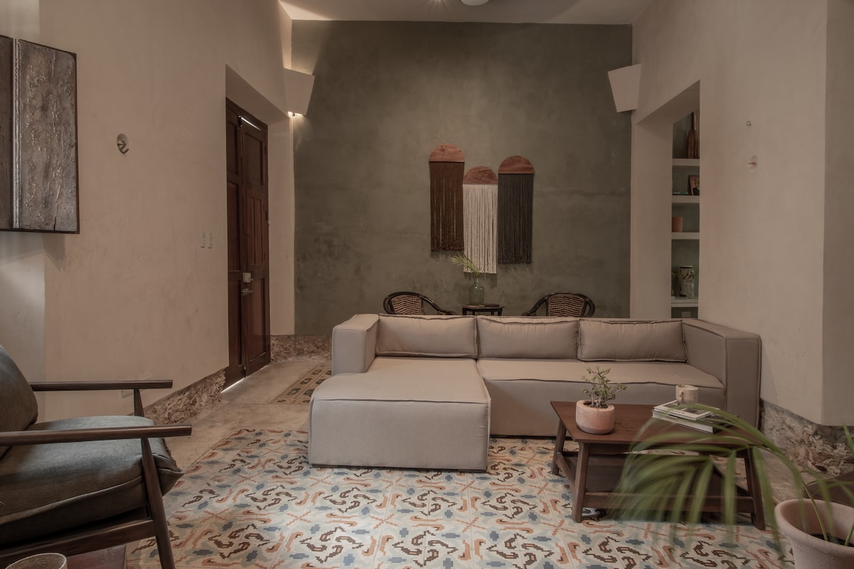 Espacio Ukiyo es un alojamiento único, con ubicación excepcional donde podrás disfrutar de la vida del centro histórico de Mérida y todas las comodidades de la vida contemporánea, rodeado de arte y el sabor de la vida de antaño, sin prisas, sin excesos, un espacio para " disfrutar del presente " Además de ofrecer una terraza en la azotea con Jacuzzi (no es con calefacción) y mobiliario para relajarse después de pasear por la ciudad Diseño por Taller Estilo Arquitectura