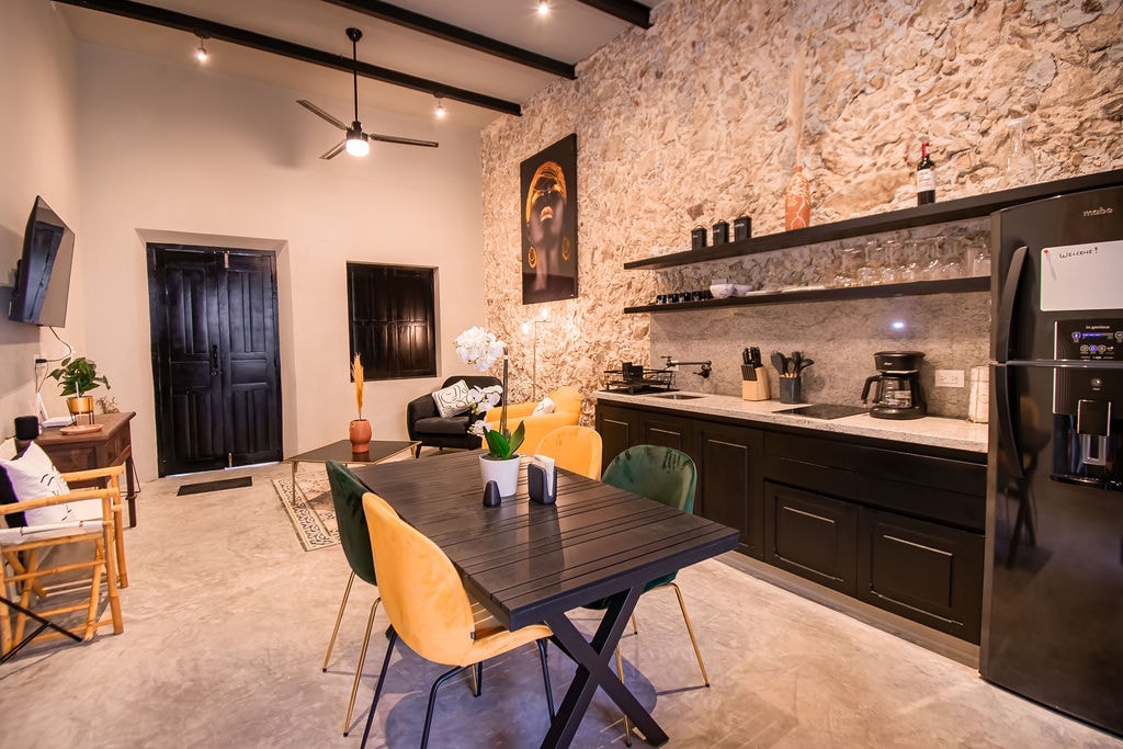 Espacio Ukiyo es un alojamiento único, con ubicación excepcional donde podrás disfrutar de la vida del centro histórico de Mérida y todas las comodidades de la vida contemporánea, rodeado de arte y el sabor de la vida de antaño, sin prisas, sin excesos, un espacio para " disfrutar del presente " Además de ofrecer una terraza en la azotea con Jacuzzi (no es con calefacción) y mobiliario para relajarse después de pasear por la ciudad Diseño por Taller Estilo Arquitectura