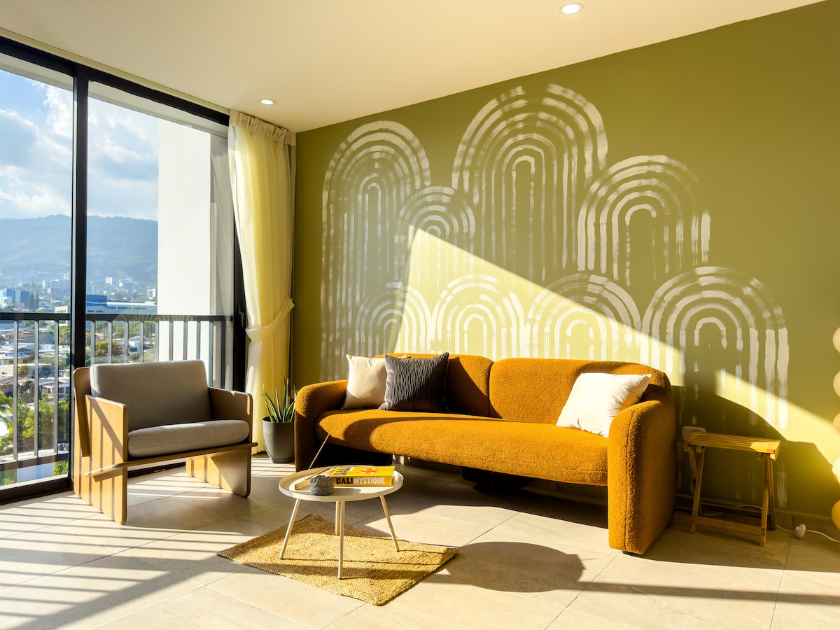 Villa de Vientos, en el corazón de Apaneca, cautiva a primera vista con su primaveral jardín interior en el que convergen tres apartamentos. Independientes, equipados al detalle y con baño propio, todos ofrecen confort, privacidad y lo necesario para sintonizar con la naturaleza, la tranquilidad del pueblo y tener una estadía memorable. El Apartamento 1, con un dormitorio y un espacio multifuncional con cocina y comedor, acomoda a 4 personas, facilita un sofá cama en sala.