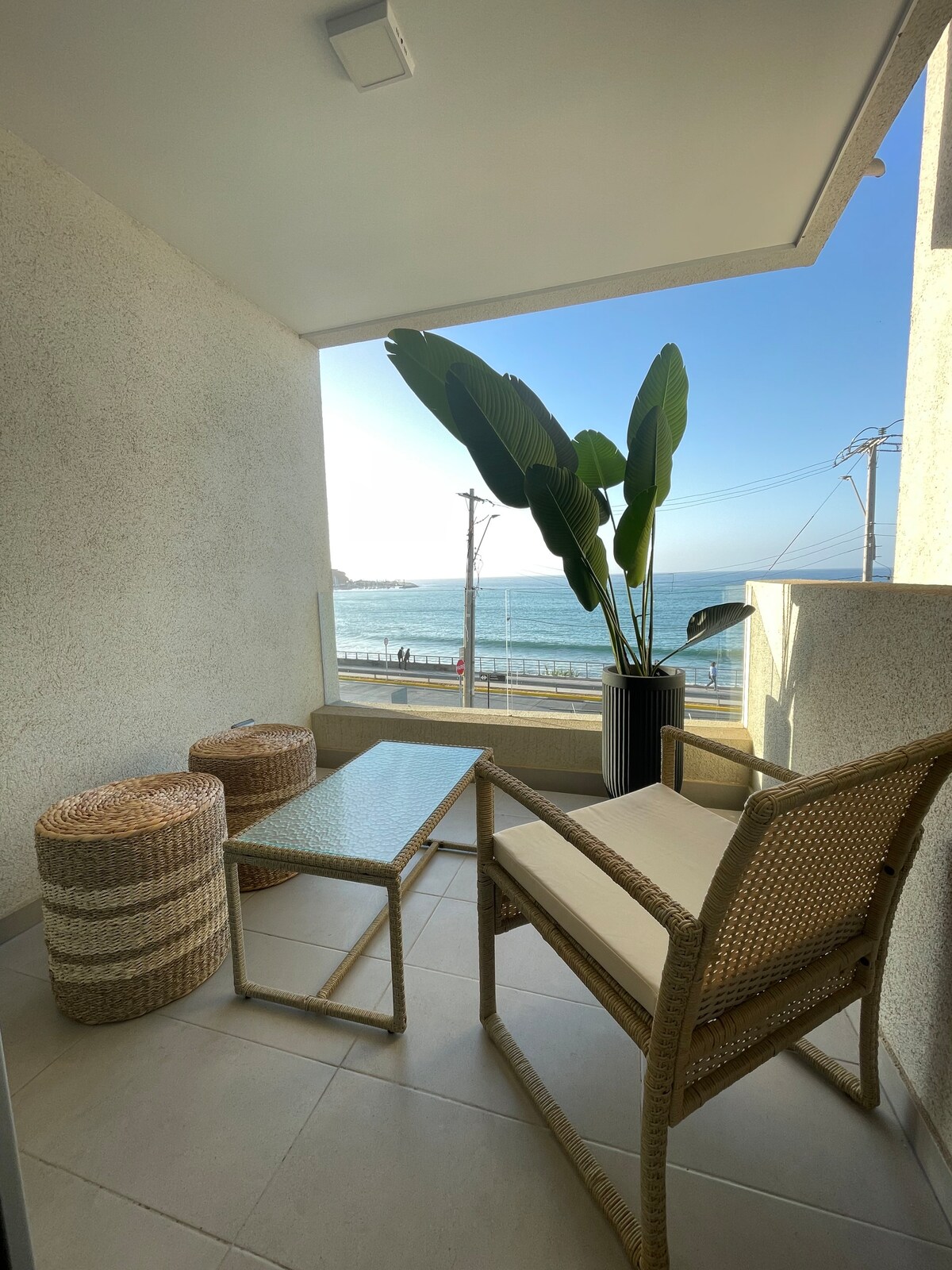 Bienvenido a "Oasis Costero". Un departamento nuevo, completamente equipado, en primera línea con vista al mar en Concón. - Piscina al aire libre de Noviembre a Marzo - Estacionamiento privado. - Amplia terraza con vista al mar equipada de parrilla eléctrica. - Incluye ropa de cama y toallas. - WiFi y Smart TV. - Cocina completamente equipada. - Sector seguro y tranquilo. - A sólo pasos de Playas, Restaurantes y Ciclovías.
