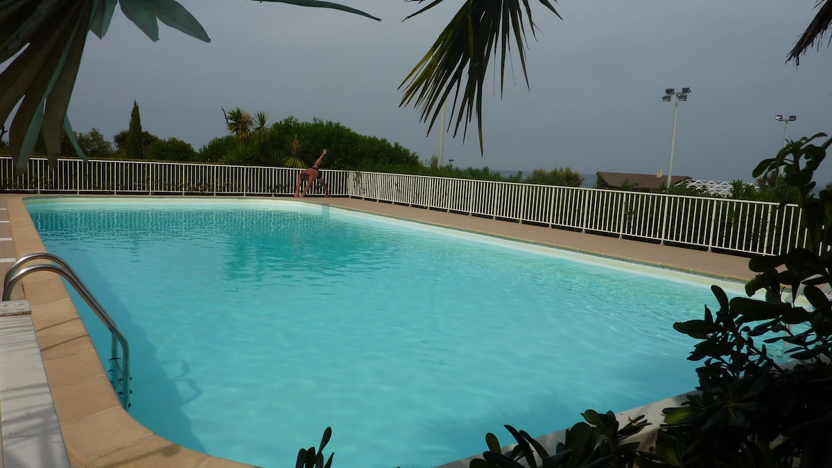 Véritable petit havre de paix avec tout l’équipement requis et plus encore ! ❤️ Internet par la fibre (SFR). CLIMATISATION RÉVERSIBLE, PLANCHA AU GAZ. 👩🍼Poussette canne, lit parapluie et chaise haute à votre disposition. 🏠 Logement en duplex dans une résidence avec piscine ouverte de mi mai à mi septembre. 🌴Plage à 100 mètres ! Une chambre au rez-de-chaussée et un espace aménagé à l’étage avec coin télé supplémentaire qui donne sur une 2ième chambre.