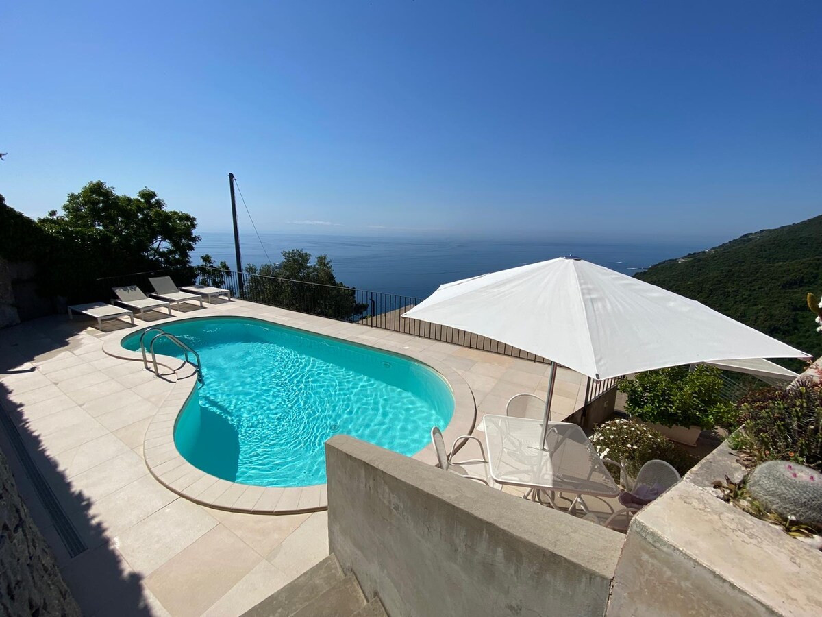 Appartamento in Villa Emilia con vista panoramica sul golfo di Salerno. Ingresso adatto per persone con disabilità motoria. L'auto può essere parcheggiata internamente alla villa. Cucina con 5 fuochi; due stanze da letto matrimoniali entrambi con condizionatore e bagno in camera. Ampissimo terrazzo con tenda parasole, tavolo e sedie in ferro battuto con ceramica Vietrese, sedie a sdraio, barbecue, forno a legna e doccia esterna. Ideale per bambini e anziani perchè possono vivere anche l'esterno