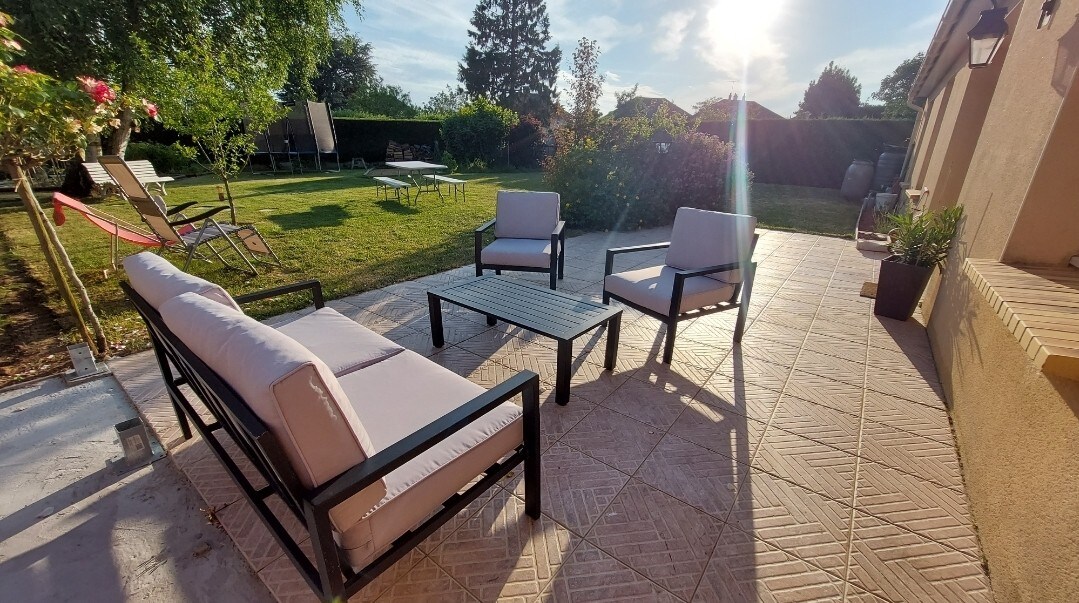 Decorada con cuidado y perfectamente equipada, la Ferme de la Boétie se alquila en su totalidad. Esta casa de campo dispone de amplias zonas comunes (salón, comedor, zona de TV), 4 dormitorios y 3 baños. En el exterior, disfrute del jardín y del prado. En el corazón del Parque Natural Regional de Perche, podrás ir a donde te apetezca (restaurantes, mercadillos, senderismo, deporte, spa...). Capacidad: 9 adultos y 3 niños (cama supletoria en la planta baja y 2 cunas bajo petición).