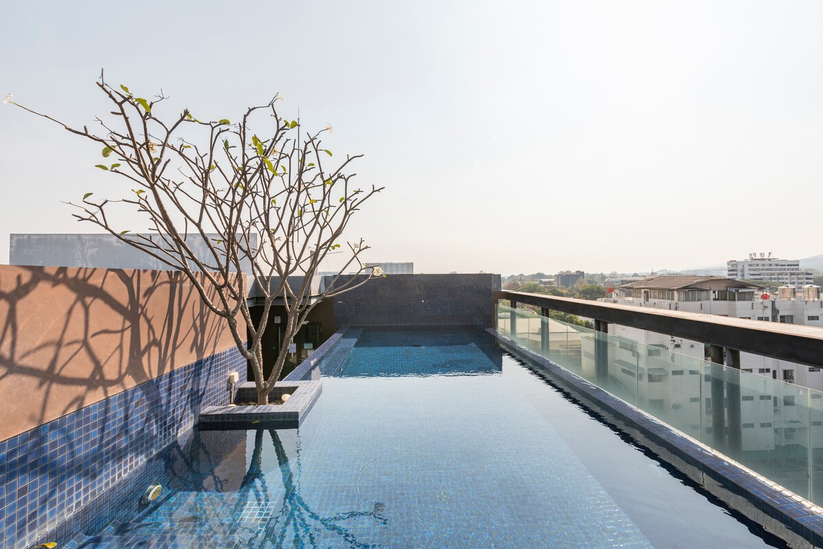 Acogedor loft moderno en ♥ Nimman/piscina en la azotea/vistas al monte