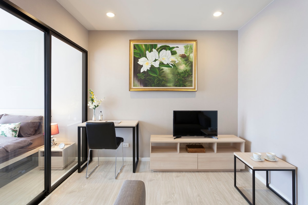 Calificación promedio: 4.84 de 5; 56 evaluacionesAcogedor estudio en Nimman a poca distancia a pie del centro comercial MAYA | Piscina y gimnasio