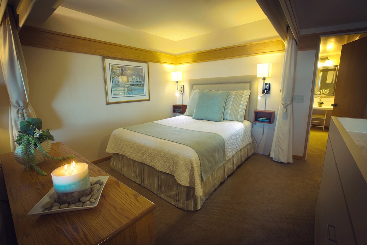 ¡Escapa de la vida cotidiana a Malibu Hideaway! ¡Ubicado en las colinas con impresionantes vistas a los cañones, montañas, el lago Sherwood y varias ciudades hasta donde alcanza la vista! Nuestros muebles están hechos a mano con madera reciclada de la soleada California. Nuestro colchón híbrido orgánico de lujo es de espuma/muelle para una mayor comodidad. Edredón mullido en los meses fríos. La suite cuenta con una bañera de estilo vintage, tocadiscos, chimenea de imitación, Keurig, microondas, mininevera, TV inteligente de 55 pulgadas, mesa/sillas y mesa de té antigua.