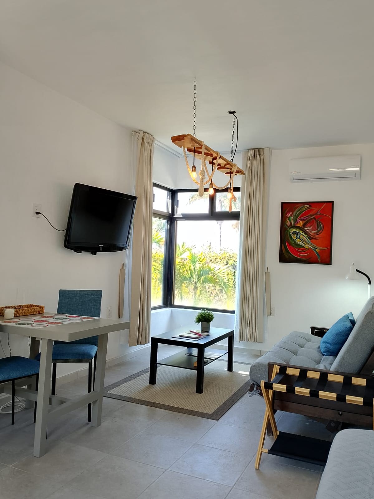 Beautiful and spacious apartment with view from third floor. Kitchen is fully equipped and has an electric induction grill for your safety. The apartment is part of a residential area (Club Residencial Riberas del Chante) that grants 24-hour security and the use of pool, wading pool, jacuzzi (over 18 years old) grill, football field, tennis and basketball court. In the living room there is a TV with Total Play.