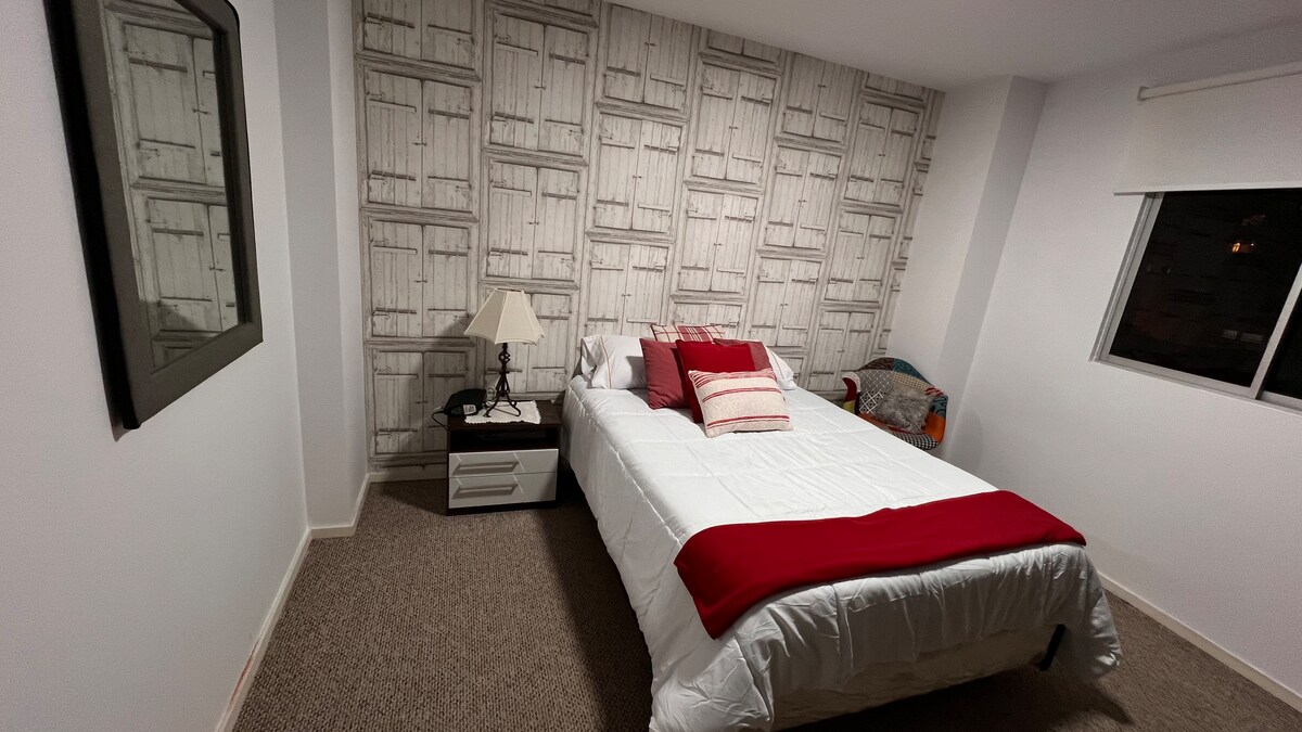 Departamento confortable en planta baja, con ubicación en la mejor zona de Cochabamba. A pocos pasos cuenta con tiendas, restaurantes, cafetería y heladería. Fácil acceso al transporte público. Cuenta con una cama cómoda y ventilador en el dormitorio, baño, una pequeña isla-bar, comedor, cocina, refrigerador, living y televisor smart de 55". El acceso es con clave numérica para que tu ingreso sea independiente.