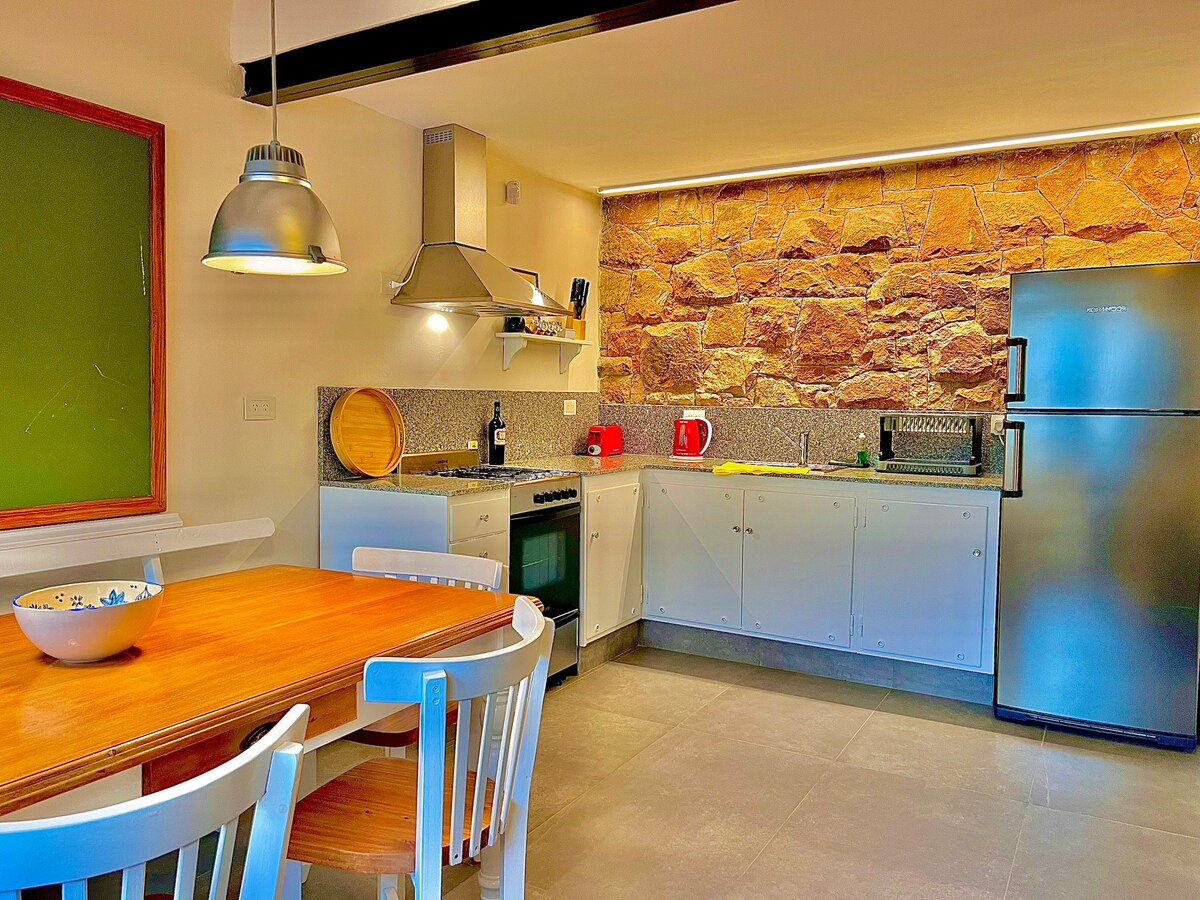 Relájate en este alojamiento único y tranquilo. Casa de construcción Natural, hecha con mucho amor, materiales reutilizados y nobles. Super amplia, fresca y acogedora, ideal para pasar unos días en la sierras para desconectar y conectarse con la naturaleza. Ubicada en un barrio tranquilo, rodeada de arboles y pajaritos. A 6 km del maravilloso Rio Quilpo, a 3 km de la plaza del pueblo.