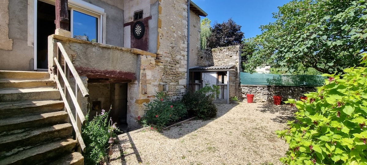 Para una noche o una estadía, le damos la bienvenida a esta pequeña casa enólogo, su automóvil estará estacionado en el patio cerrado y seguro, espacio para bicicletas y motocicletas. Estancia-cocina con convertible, dormitorio, cuarto de baño con ducha, será totalmente independiente dentro de nuestra propiedad situada en un pequeño pueblo típico de piedras rosas, cerca de TOURNUS y en el corazón de Borgoña. Té, café, chocolate disponible en el alojamiento, dispensador de pan y bollería a 150 m.