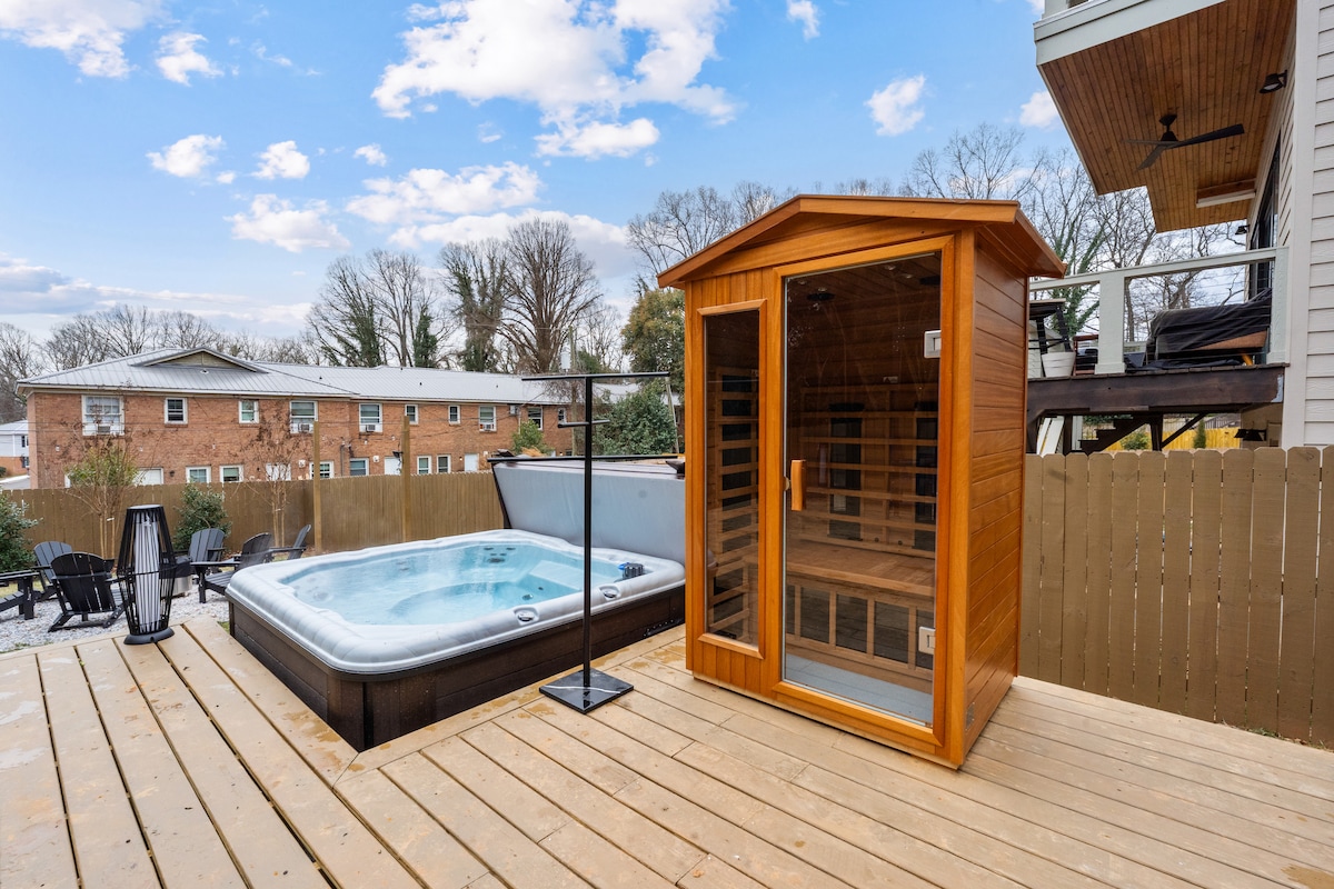 ¡El 1 % de los mejores Airbnbs! ⭐⭐⭐⭐⭐ Historial de 5 estrellas con huéspedes que regresan. Bienvenido a Teeni Santorini, un refugio de bienestar de nueva construcción inspirado en nuestra luna de miel en Grecia. La pequeña casa cuidadosamente diseñada cuenta con una bañera de hidromasaje privada, sauna de barril, terapia de luz roja, ducha de vapor, gimnasio, salón en la azotea y fogata, perfecta para descansar y recargar energías. ¡Azotea de 600 pies cuadrados! Se puede ir caminando a NoDa (10–15 min), Optimist Hall (5 min) y Urban District Market (5 min). Favorito de los huéspedes: “No solo una estadía, un retiro completo”.