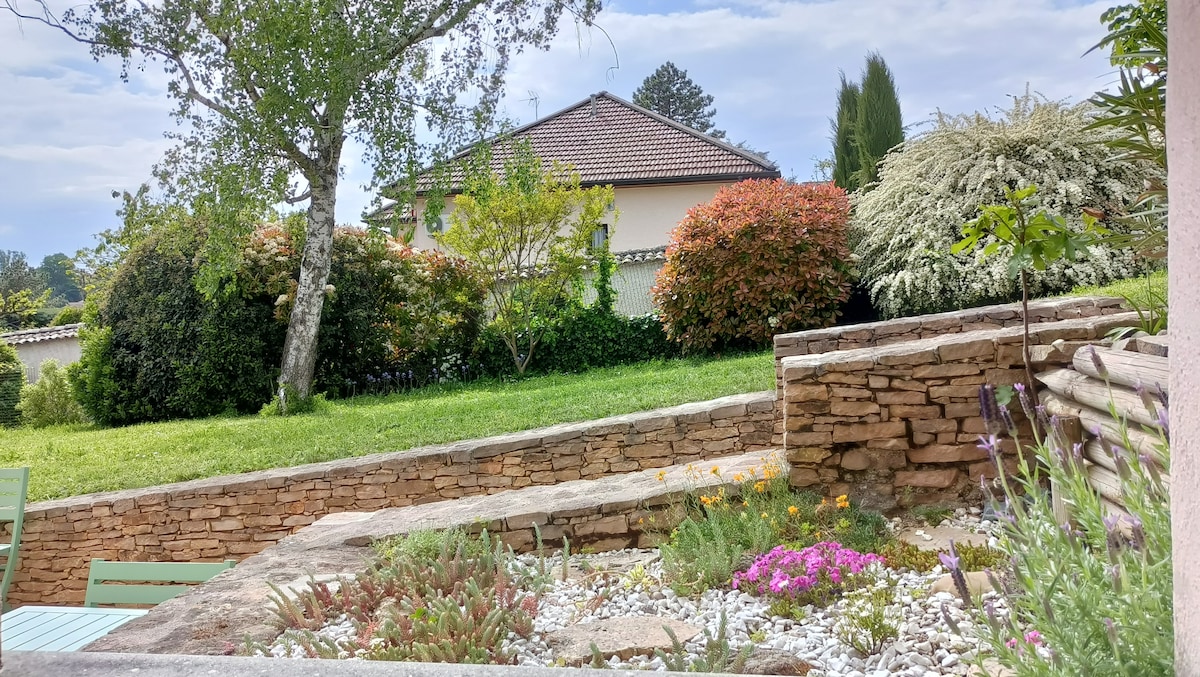 Casa adosada en su nido de vegetación, un T3 dúplex de 50 m2 con todas las comodidades. - Una gran sala de estar con cocina abierta de 21 m2 - Dos amplios dormitorios arriba con cama Queen Size 160x200 cm - Baño y aseo separados en la planta baja - Una logia cubierta de 11 m2 abierta a un jardín - Una plaza dedicada en un aparcamiento privado vallado y un refugio para sus bicicletas A 500 m de los comercios y a 50 m del autobús 15: Place Bellecour en 30 minutos.