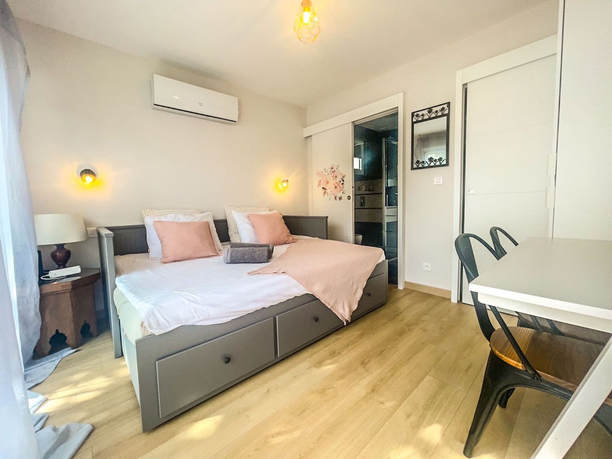 Disfruta de tu estancia en este moderno piso con las siguientes características: → Ideal para viajeros profesionales → Reformado en 2023 → Aire acondicionado → 55 m² → Balcón orientado al sur → 1 dormitorio con cama king size → 1 sofá cama queen size → Acceso gratuito a Netflix → Wifi gratuito, rápido y seguro → Cocina con microondas, horno y lavavajillas → Lavadora → Parking privado y gratuito → Cerca de público transporte