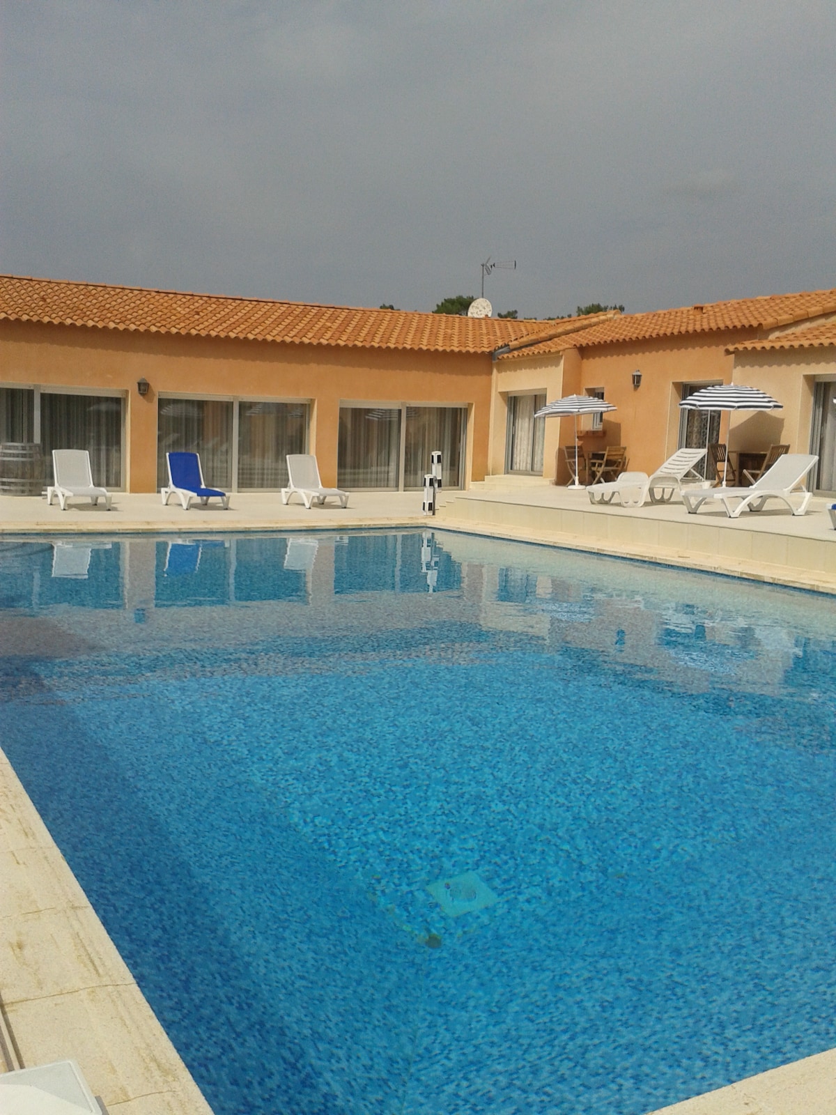 Agradable habitación con cama doble (160), muy tranquila, baño y WC independientes privados, vista a la piscina climatizada sin vigilancia Posibilidad de alquilar un segundo dormitorio idéntico ( suavidad oceánica, cama doble 140 y cama infantil 1,2 m de LARGO) No hay comida en el lugar, excepto el desayuno servido debajo de la pérgola El golf, dos campos (pitch and putt y campo grande) accesibles en 3 minutos a pie Cerca: puerto (10 minutos a pie), playa a 5 minutos en bicicleta, tiendas a 8 minutos a pie, restaurantes
