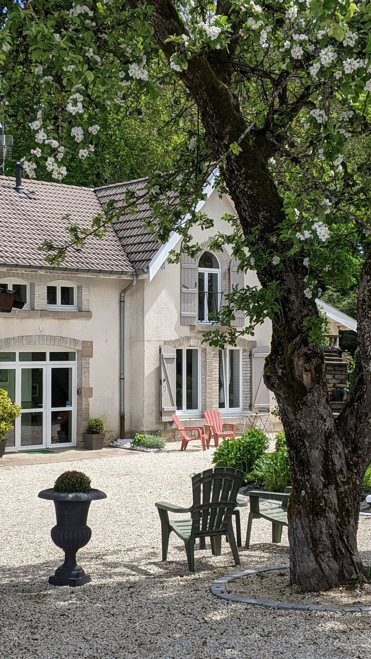La casa de campo de La Charme se encuentra en Sacquenay, en el corazón de la región de Borgoña-Franco Condado. Quería que fuera cálido y cómodo para que mis invitados pudieran pasar momentos relajantes y rejuvenecedores. Para crear una verdadera experiencia de bienestar, un spa está a su disposición en la terraza, así como un cine en casa en la sala de estar. También ofrezco desayunos, así como tablas de aperitivos y una selección de bebidas locales y vinos.