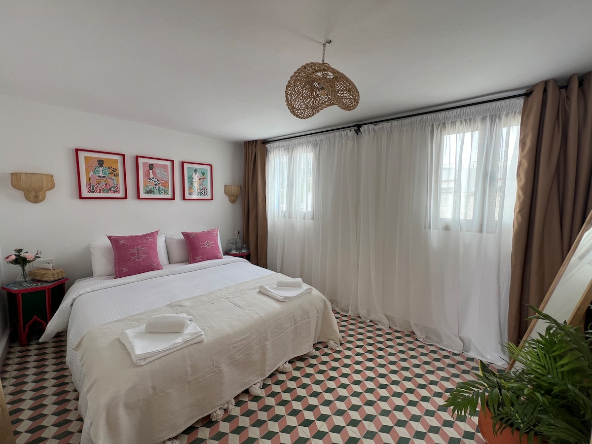 Situado en pleno centro de la Medina,estarás a pocos pasos de los sitios históricos y restaurantes locales. El apartamento tiene dos camas de 140 y dos camas de 90, es posible añadir una cama de 140 en uno de los salones y permite aumentar la capacidad de 6 personas. Equipado con todas las comodidades modernas, combina autenticidad y diseño contemporáneo para una estadía agradable. Desde su terraza privada se sumergirá en el corazón de la Medina y podrá admirar la puesta de sol.