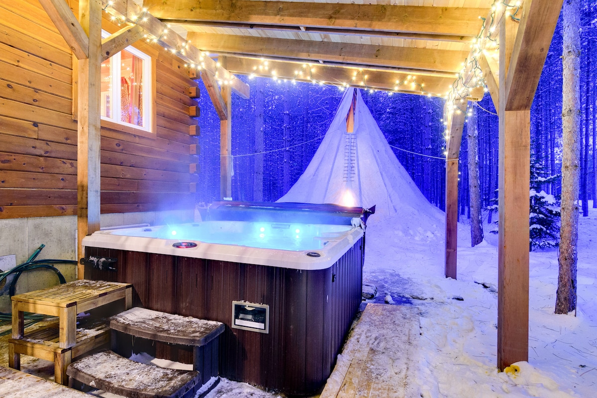 Lujosa cabaña, enorme terraza, jacuzzi y sauna