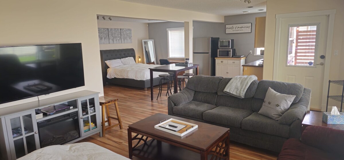 Nuestra suite privada de un dormitorio se encuentra en la hermosa Chemainus. Ubicado en un barrio tranquilo, estamos cerca de servicios que incluyen, a 8 minutos a pie de tiendas de comestibles, farmacias, licorerías, restaurantes y la propia cervecería de Chemainus. Disfruta de una noche en el teatro Chemainus o navega por las calles del centro explorando murales y tiendas de fama mundial. Nuestra suite tiene todo lo que necesitas, cocina/sala de estar de concepto abierto, sofá cama en la sala de estar, 2 televisores con Netflix + Bluesky Cable, wifi, lavandería, aire acondicionado.