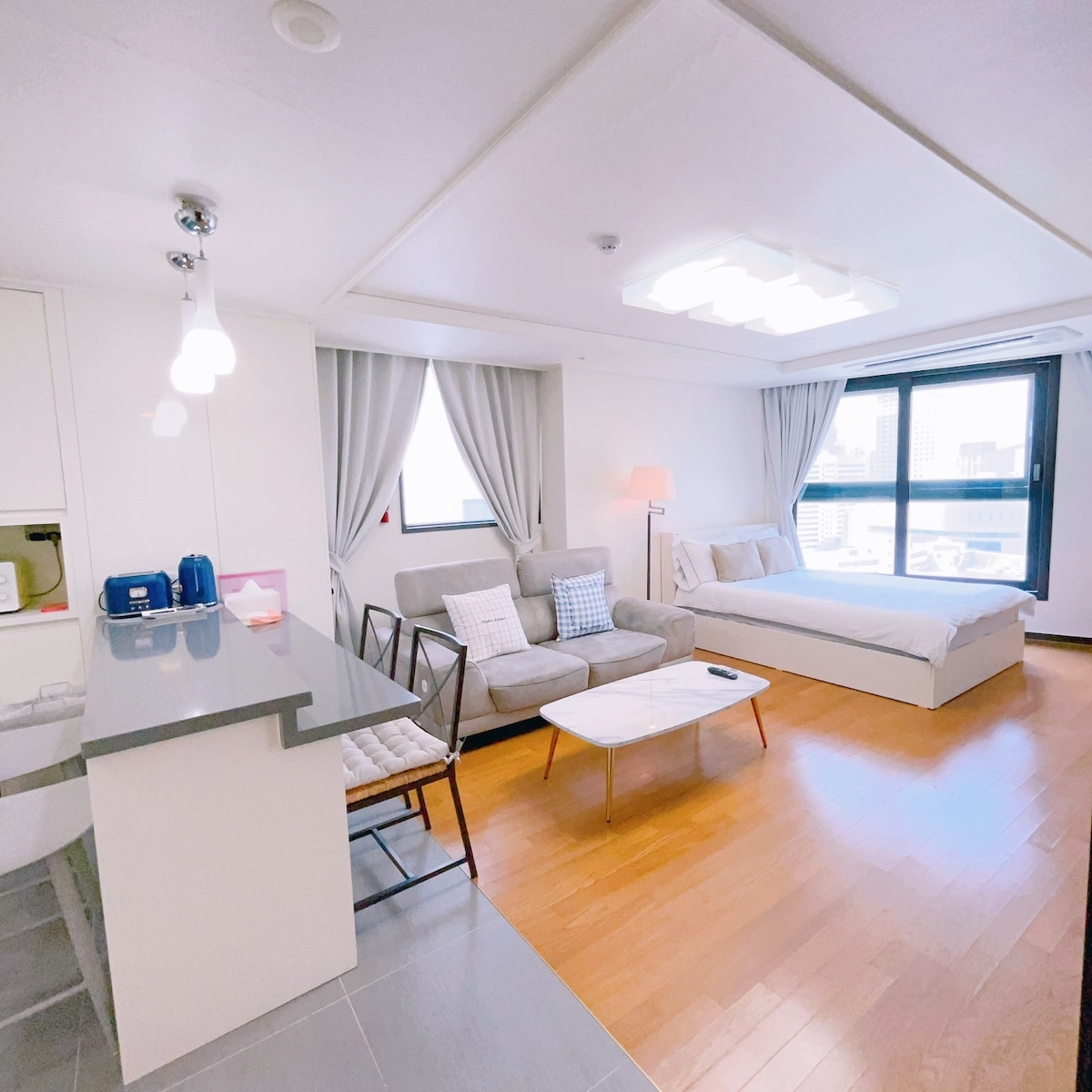 ★ Lupin ★ Abierto en enero♡ A 2 minutos de la playa de Haeundae♡ Limpieza en primer lugar♡ ★Equipo - 1 cama tamaño queen, 1 súper individual y otra ropa de cama adicional. (Funda nórdica. Funda de almohada hecha de algodón natural) - Netflix/wifi inalámbrico. - Cortina opaca de lujo - Secador de pelo, alisador de pelo. - Aceite limpiador, limpiador de espuma, jabón - Cepillo de dientes desechable de pasta de dientes, jabón. - Champú, acondicionador, gel de baño, toalla - TV, nevera, aire acondicionado, lavadora, microondas - Vajilla - Copas de vino, abridores de vino - Loofah desechable, - Detergente para lavar, secarropas.