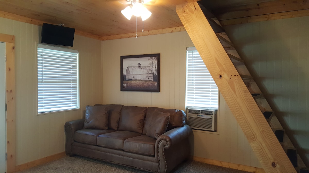 Cozy, rustic, historic, rock cottage, 240 sf. Huge front deck & scenic back deck. Old hardwood floors, vaulted tin ceiling. Mini kitchen-farmhouse sink, fridge, coffee. Queen bed. Modern mini-split heat pump cools, heats. Wood-burning stove. Set on 7-acre ranch w/hill country views,horses. Quirk Alert! Bathroom is accessed outside front door 25 paces to back of cottage. Open shower with rain head and wand. Exposed rock walls, concrete floor. No chemicals used so critter sightings possible.