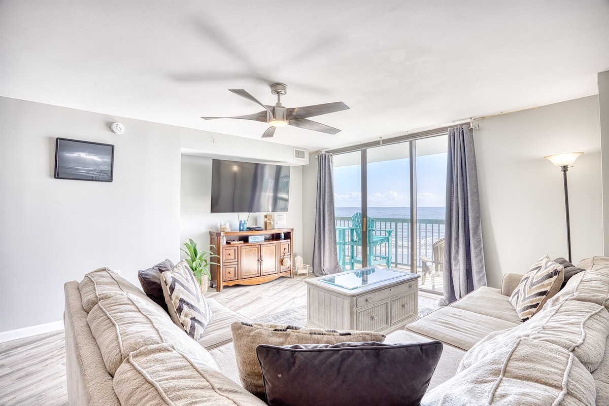 Slip away from the noise of everyday life and settle into a space made for slowing down together. This freshly updated oceanfront condo invites you to reconnect in a setting where mornings are unhurried, evenings are calm, and the ocean is always in view. From the moment you step inside, the wide expanse of blue draws you in—setting the tone for a stay that feels intimate, restful, and effortlessly romantic.